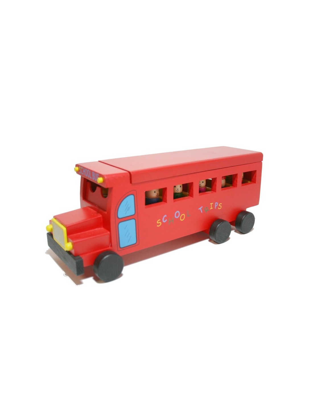 Un encantador autobús de fusta en color vermell amb ninots que es poden col·locar dins del vehicle. El sostre és desplaçable per facilitar la incorporació dels passatgers. Ideal per a hores de joc creatiu i simbòlic!