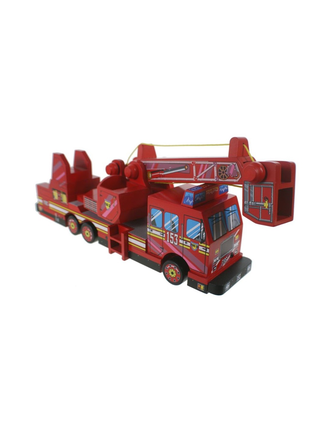 Aquest camió de bombers de fusta massissa ha estat envernissat al detall, creant una joguina visualment atractiva i duradora. L'escala giratòria i la plataforma hi afegeixen realisme i funcionalitat, perfectes per despertar la imaginació.