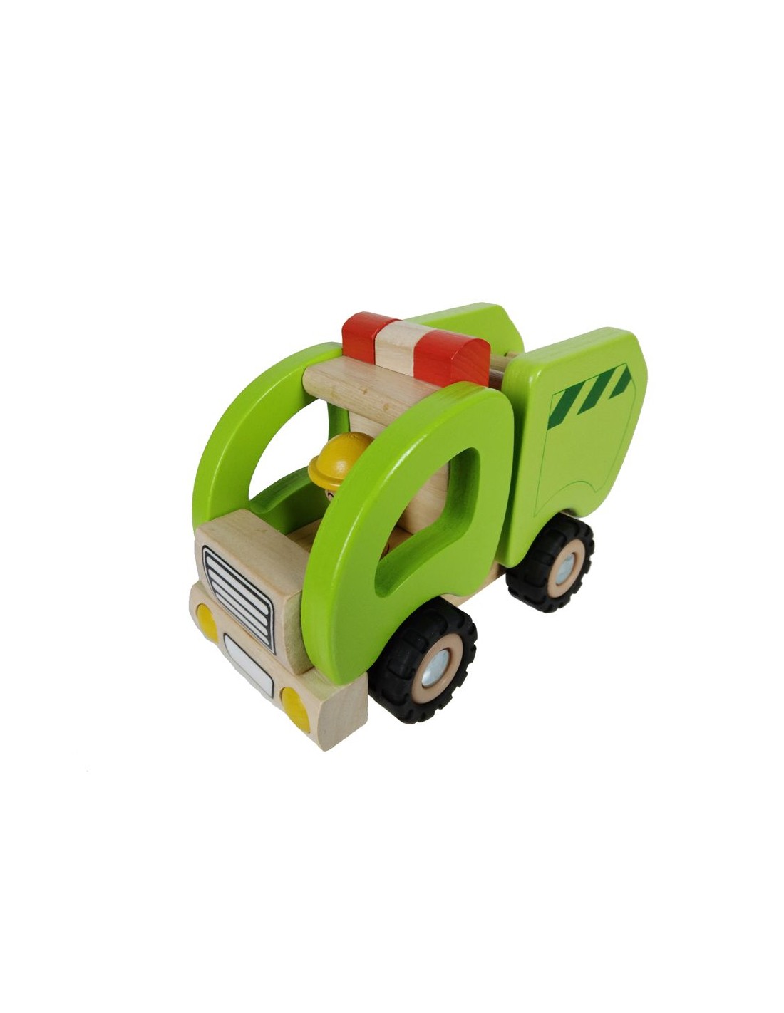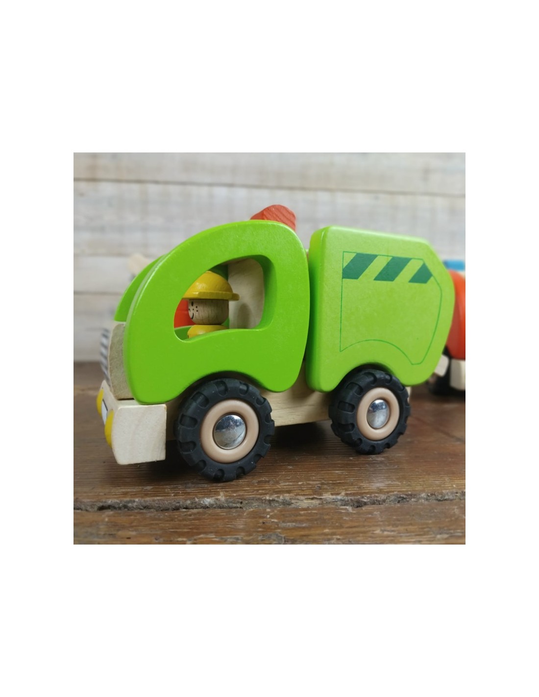 El Camió d'Escombraries de Fusta per netejar totes les aventures! Aquest camió d'escombraries de fusta massissa, amb el conductor llest per recollir i reciclar, té una comporta posterior que s'obre per buidar la càrrega. Ideal per als petits que volen aprendre sobre la cura del planeta mentre juguen.