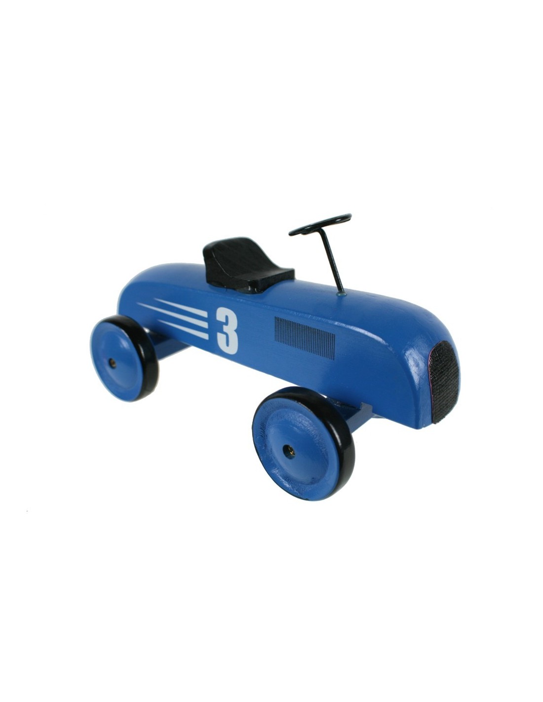 Aquest cotxe de curses de fusta massissa i un intens color blau és una peça clàssica que desperta l'emoció de petits i grans. Simple i elegant, perfecte per a les primeres aventures!