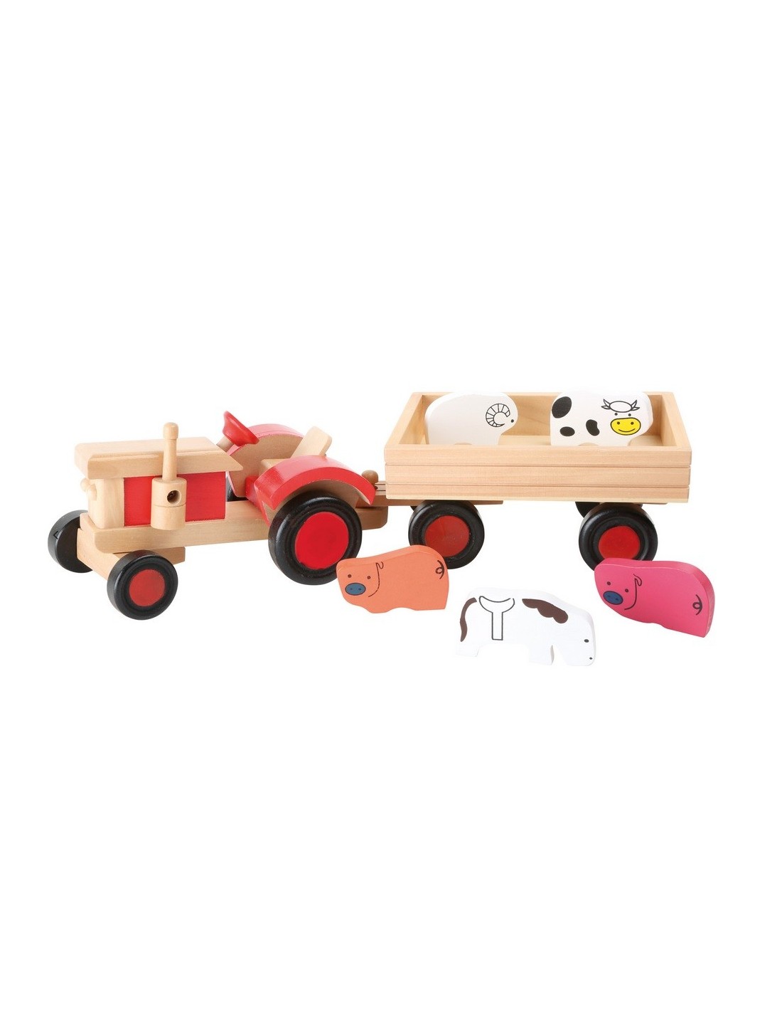 Descobriu el món agrícola amb aquest encantador tractor de fusta amb remolc i animalets. Perfecte per als petits exploradors i amants de la granja.