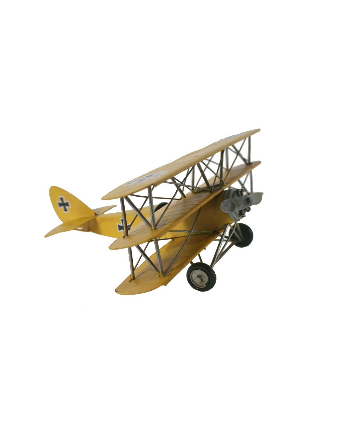 Rèplica Metàl·lica d'Avió Triplano de Color Groc: Un Toc Retro i Únic.