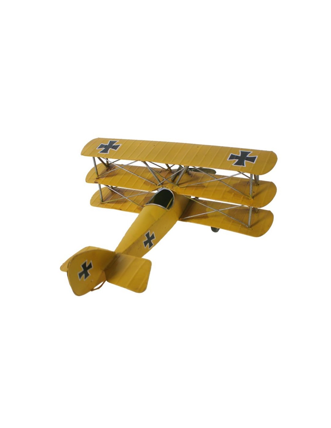 Deixa't captivar per aquesta rèplica metàl·lica d'avió triplà! Perfecta per a col·leccionistes amants del retro i per donar-li un toc decoratiu únic a la teva prestatgeria o vitrina. Si vols regalar alguna cosa especial, aquesta peça serà un èxit garantit!