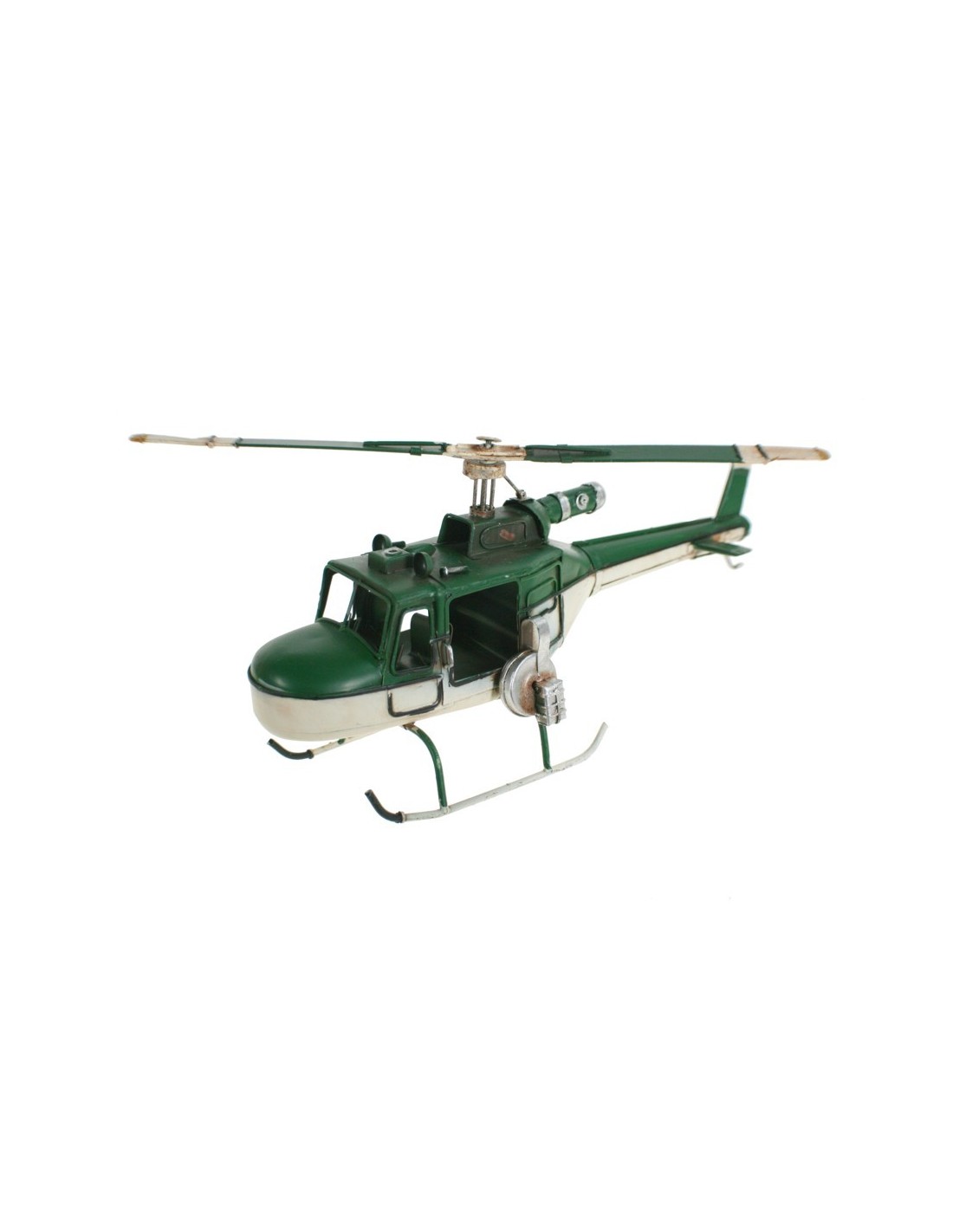 Rèplica de metall d'helicòpter de combat, verd i blanc, amb nombrosos detalls. Ideal per decorar la teva llar i perfecta per a exposició i col·leccionisme.