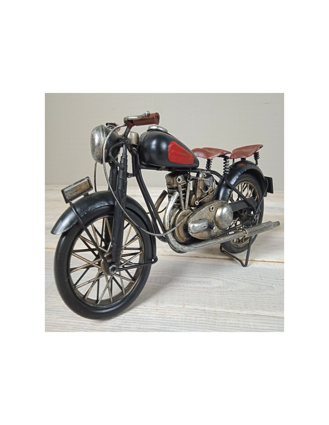 Motocicleta Retro Col·leccionable. Perfecta per als amants del col·leccionisme de vehicles retro, aquesta motocicleta, amb els seus nombrosos detalls, es destacarà a qualsevol vitrina o prestatge. També és un regal original que segurament encantarà.