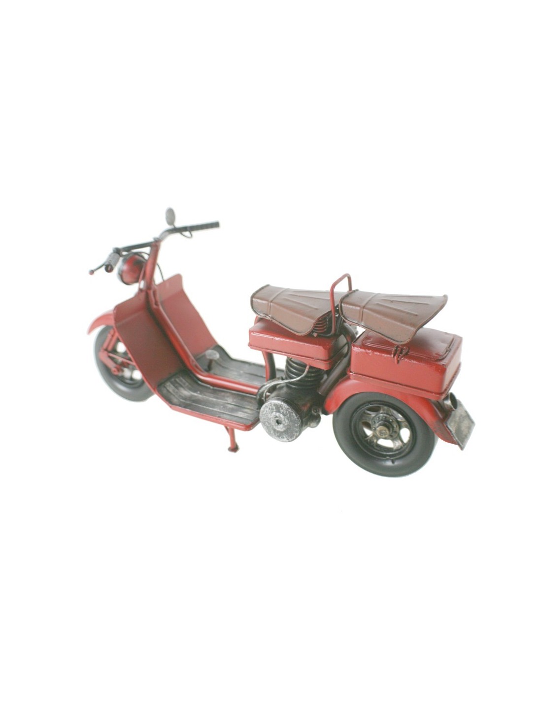 Moto Decoració Retro en Metall Color Vermell Rèplica de Motocicleta Ideal Col·leccionistes. Mides: 15x30x10 cm.