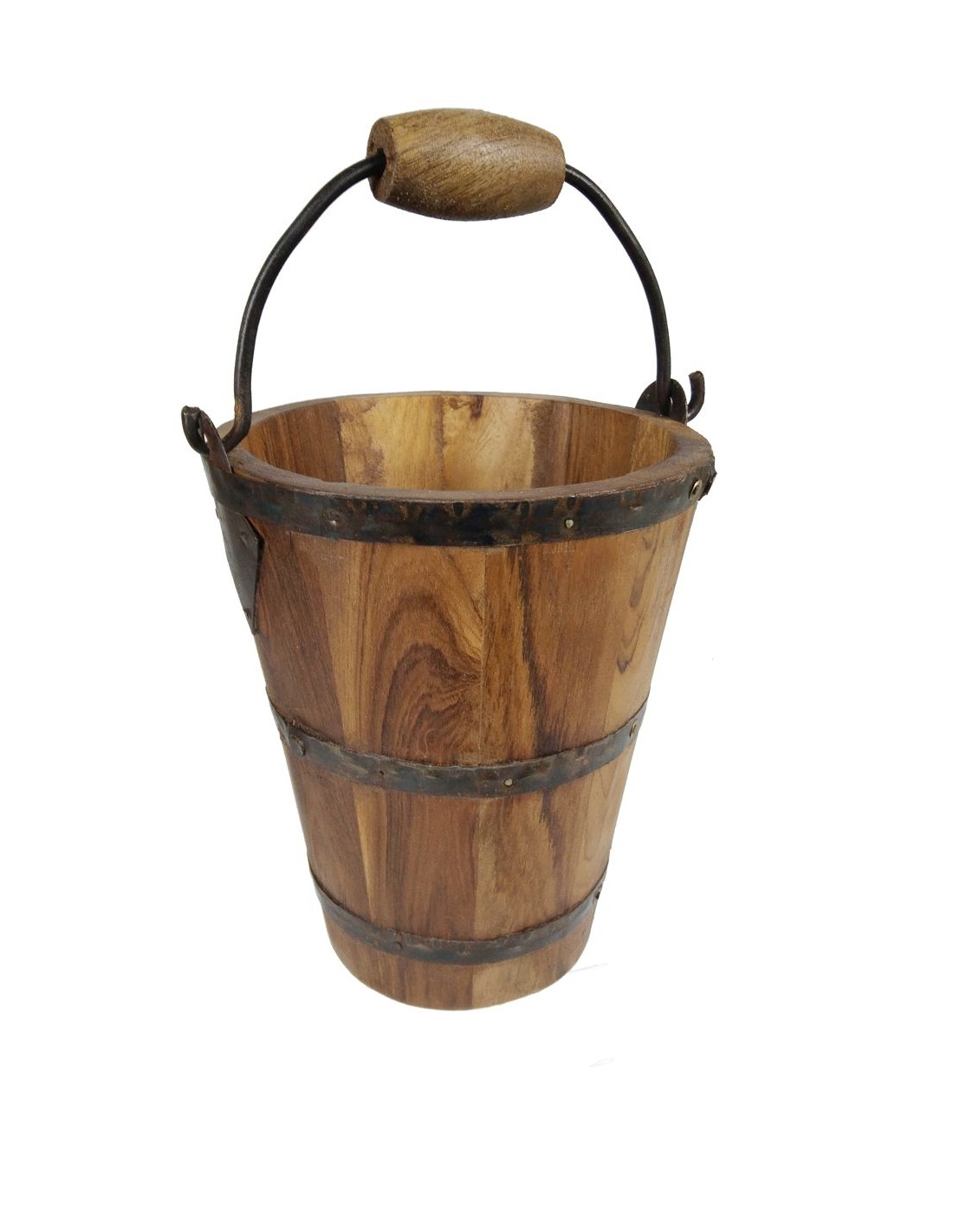 Cubo de Madera de Acacia con Asa de Hierro – Artesanía y Estilo Rústico.
