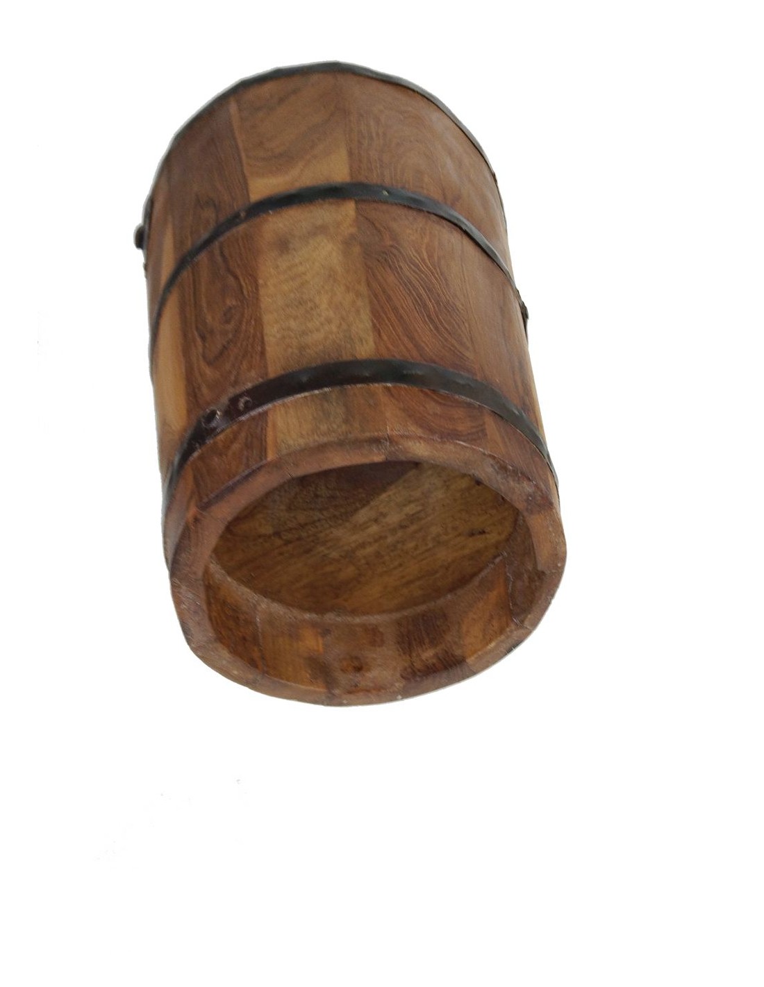 Cubo de Madera de Acacia con Asa, Artesanía y Estilo Vintage para Decoración Hogar. Medidas: 19,5x18 Ø cm.