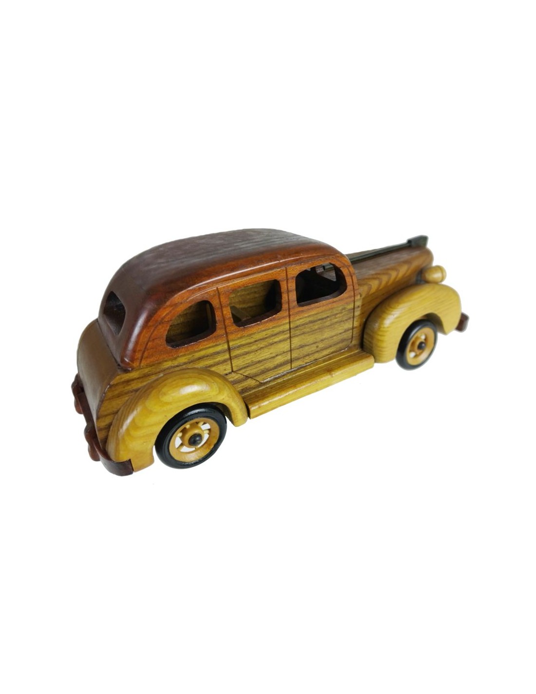 Realizado con madera maciza y ensamblado a mano, esta pieza única transmite la calidez y durabilidad de los objetos bien hechos. Su diseño vintage, inspirado en los automóviles de la primera mitad del siglo XX, lo convierte en un regalo excepcional y en un elemento de decoración lleno de historia.