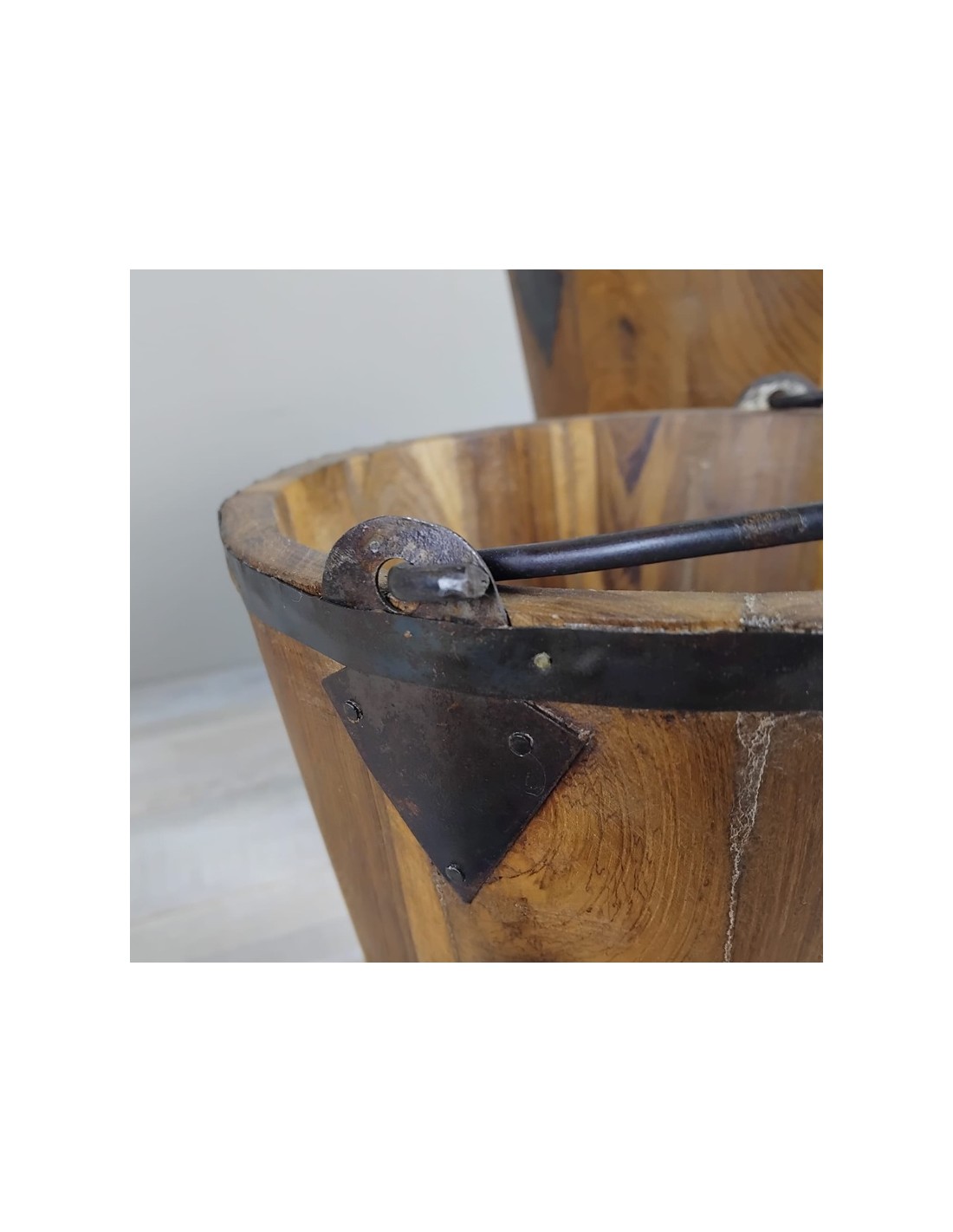 Cubo de Madera de Acacia con Asa, Artesanía y Estilo Vintage para Decoración Hogar. Medidas: 35x30 Ø cm.