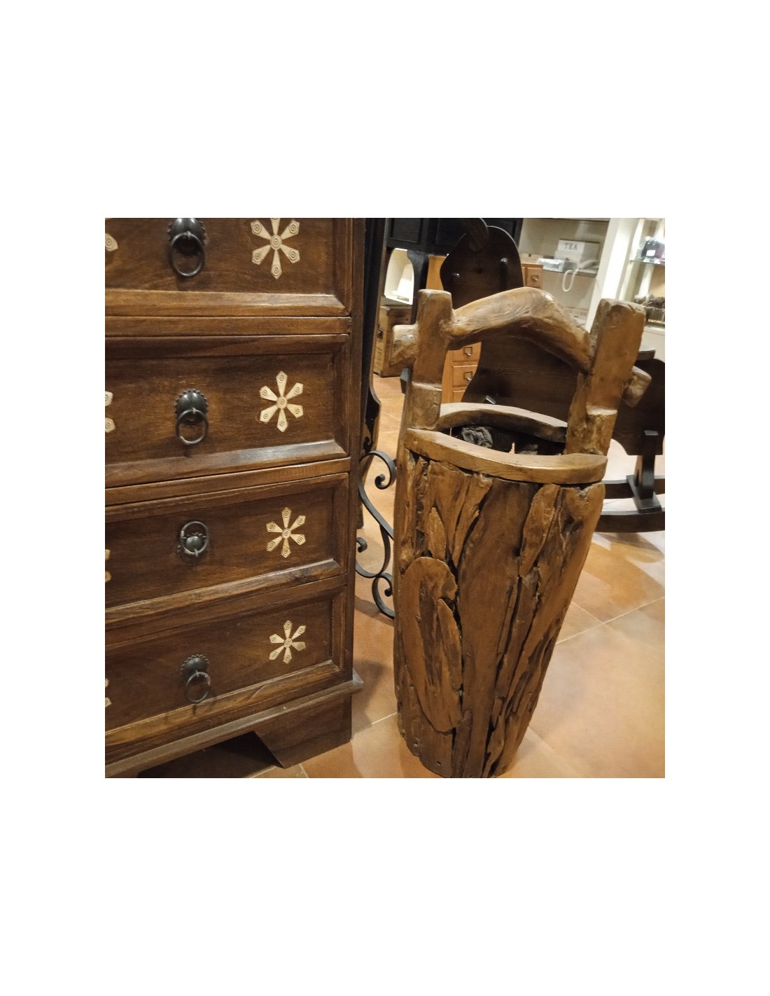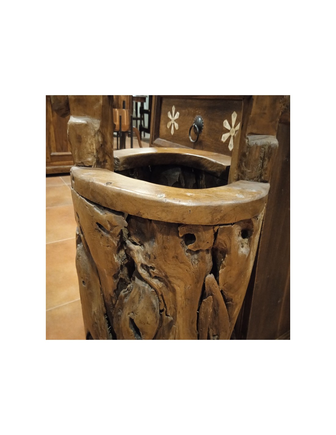 Cubo Alto de Madera de Teca con Asa Elegancia Natural para el Hogar estilo Rústico. Medidas: 67xØ30 cm.