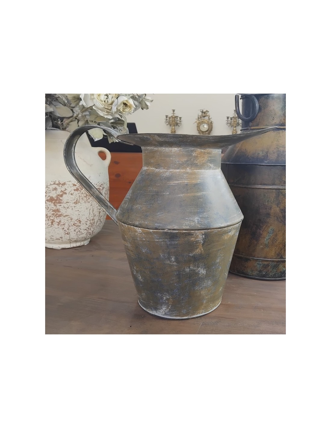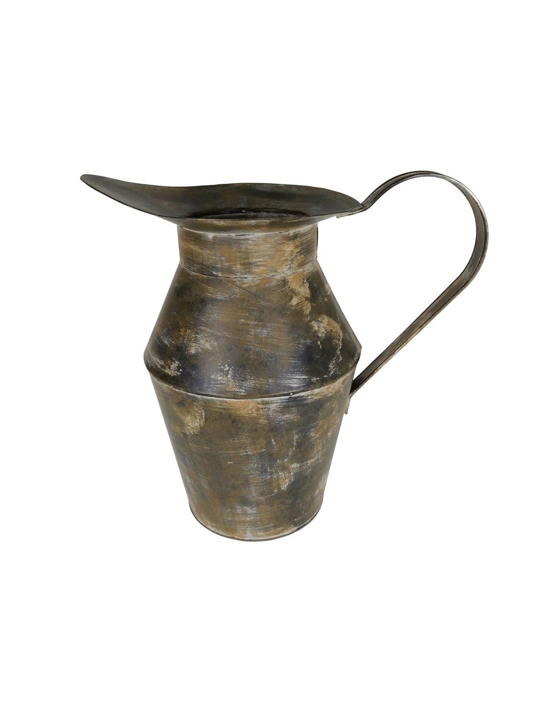 Añade un toque rústico y encantador a cualquier rincón con esta jarra de metal decorativa. Su diseño robusto y su asa grande la convierten en un elemento perfecto para decorar tu hogar con estilo y personalidad.