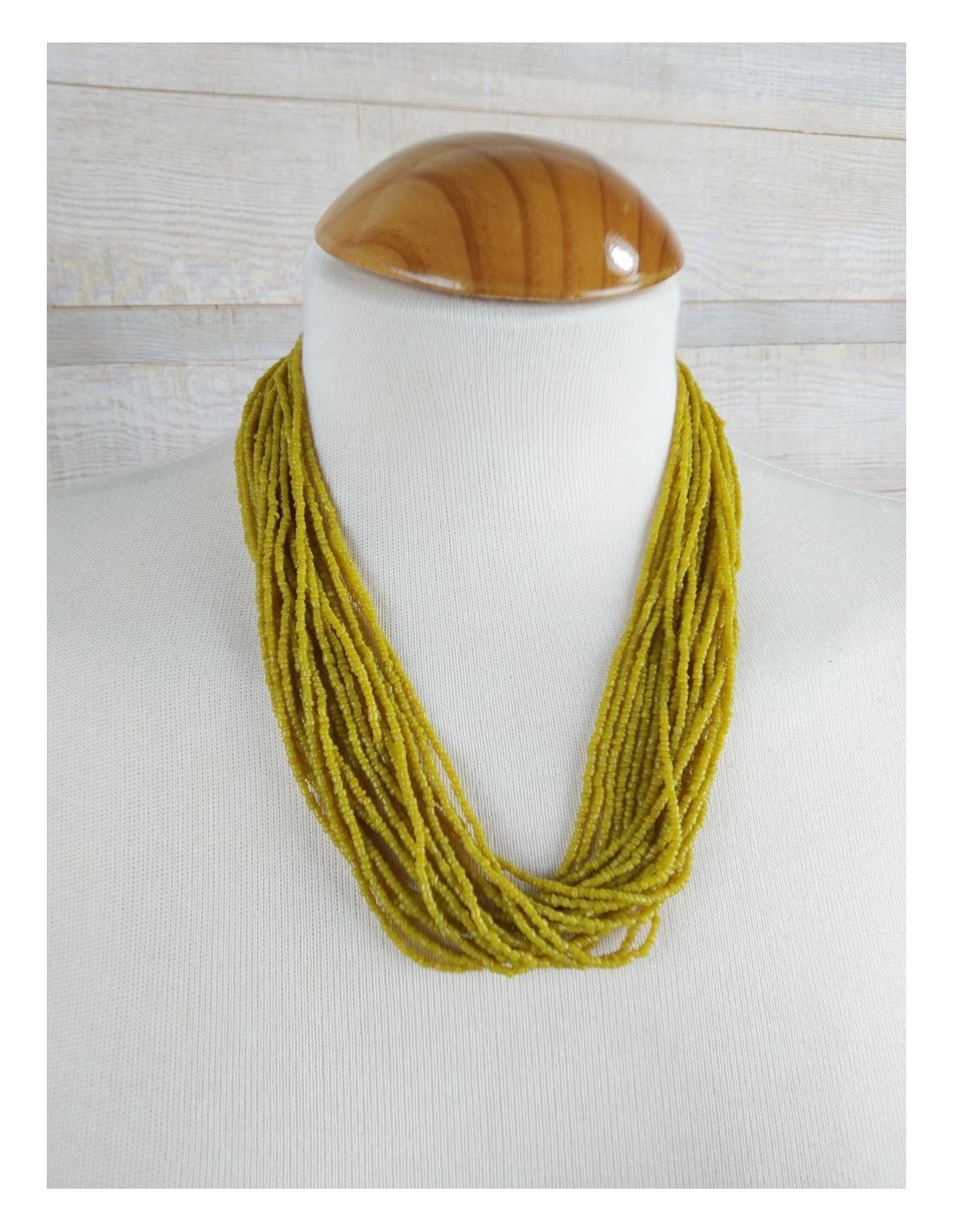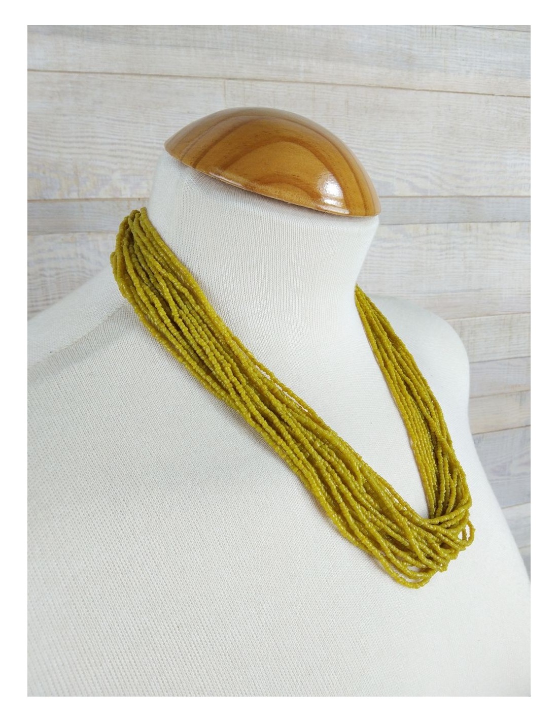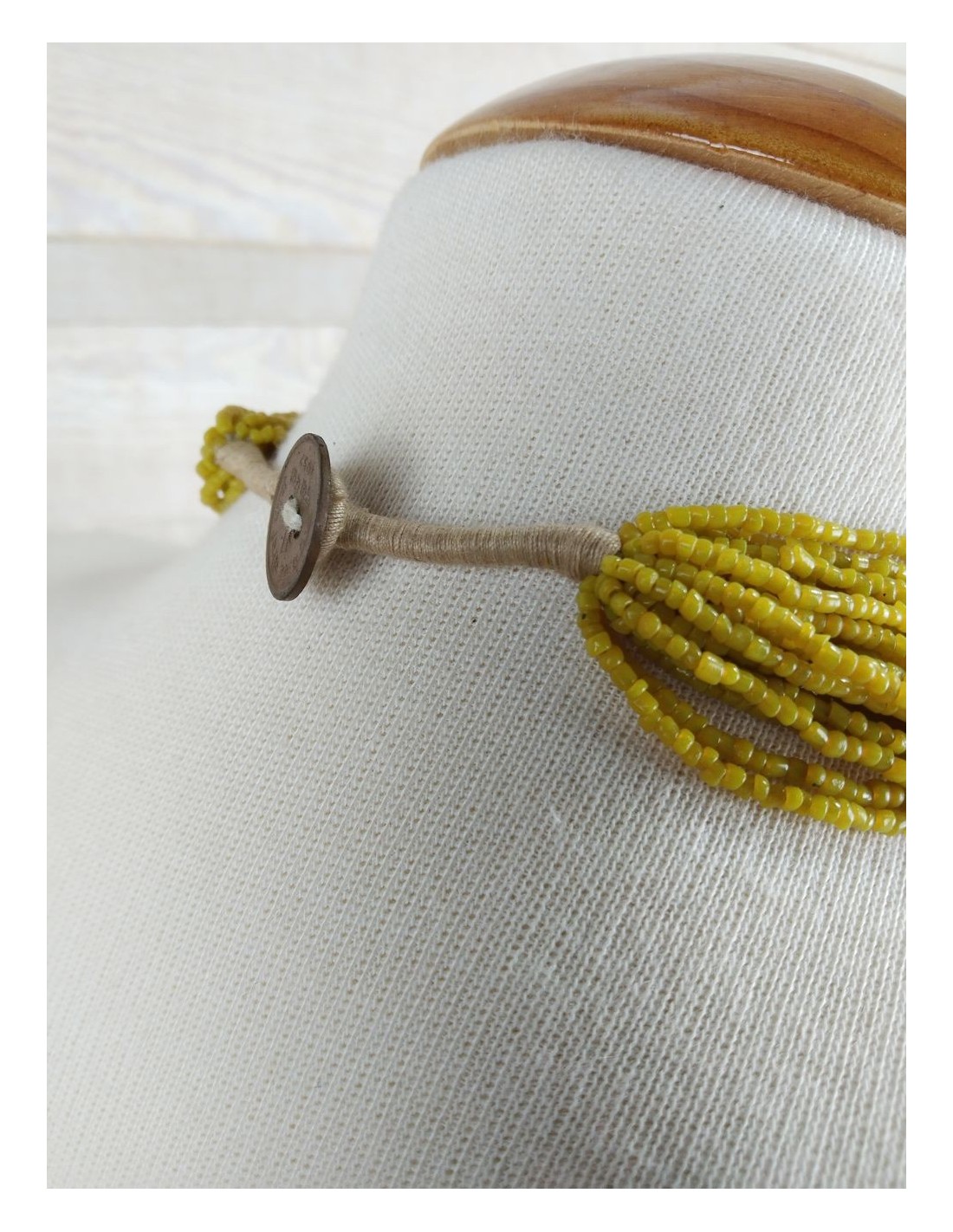 Collar indio artesanal para mujer cierre con moneda original color amarillo. Medidas: 52 cm.