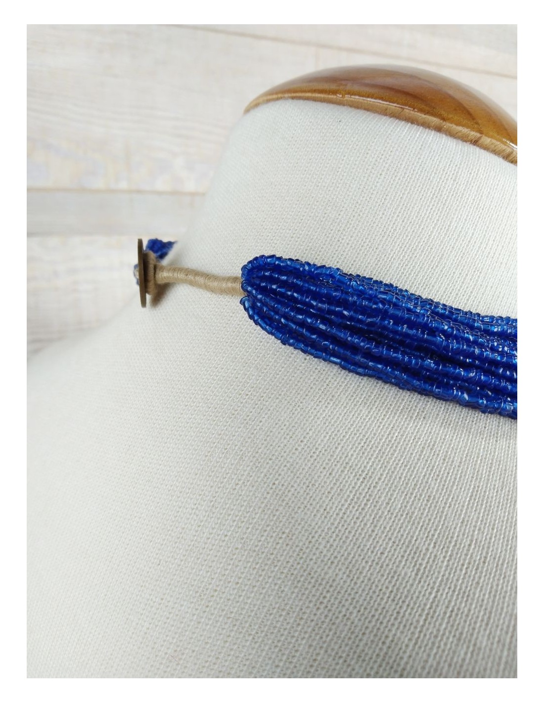 Collar indio artesanal para mujer cierre con moneda original color azul eléctrico. Medidas: 52 cm.
