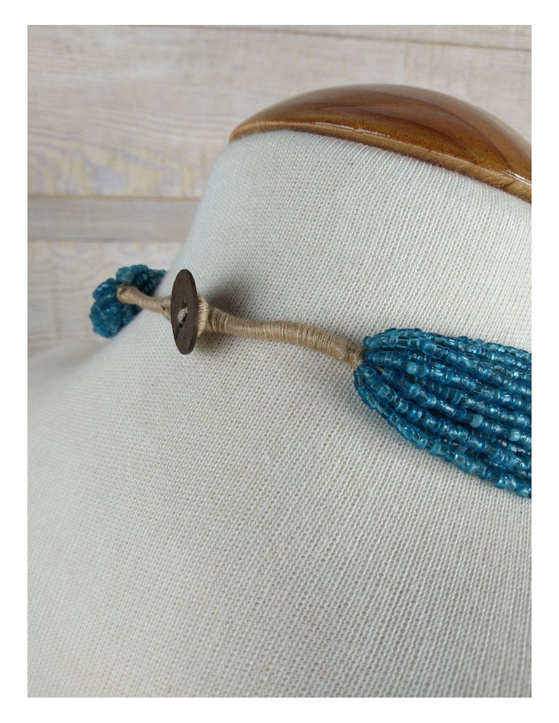 Collar indio artesanal para mujer cierre con moneda original color azul. Medidas: 52 cm.
