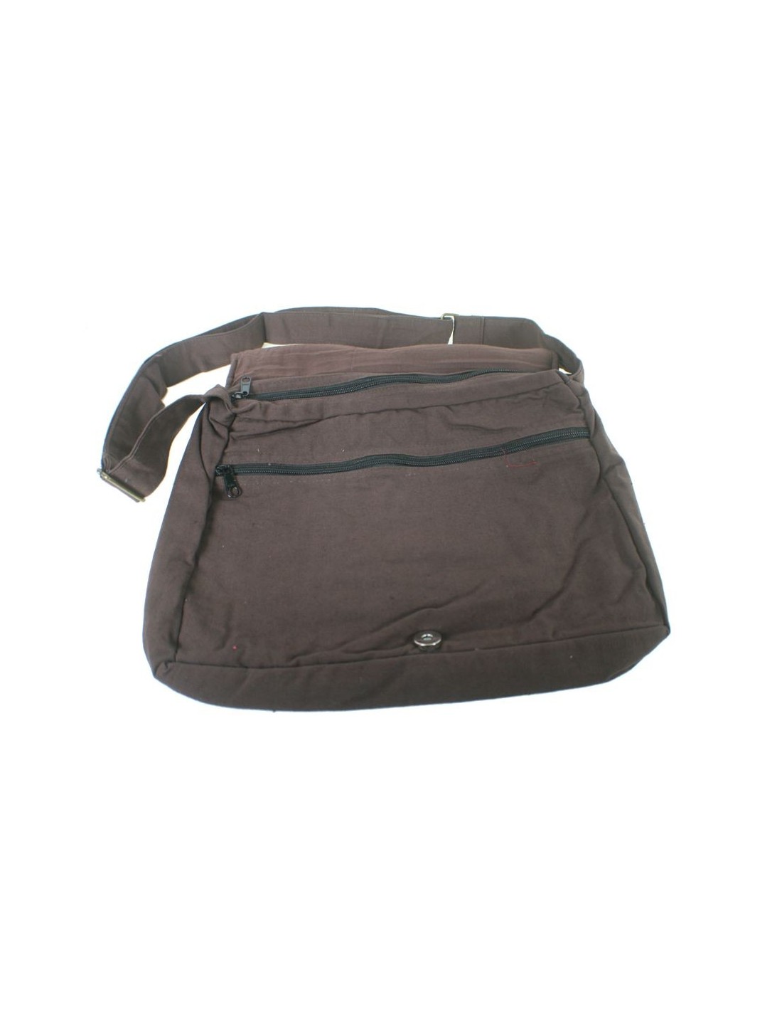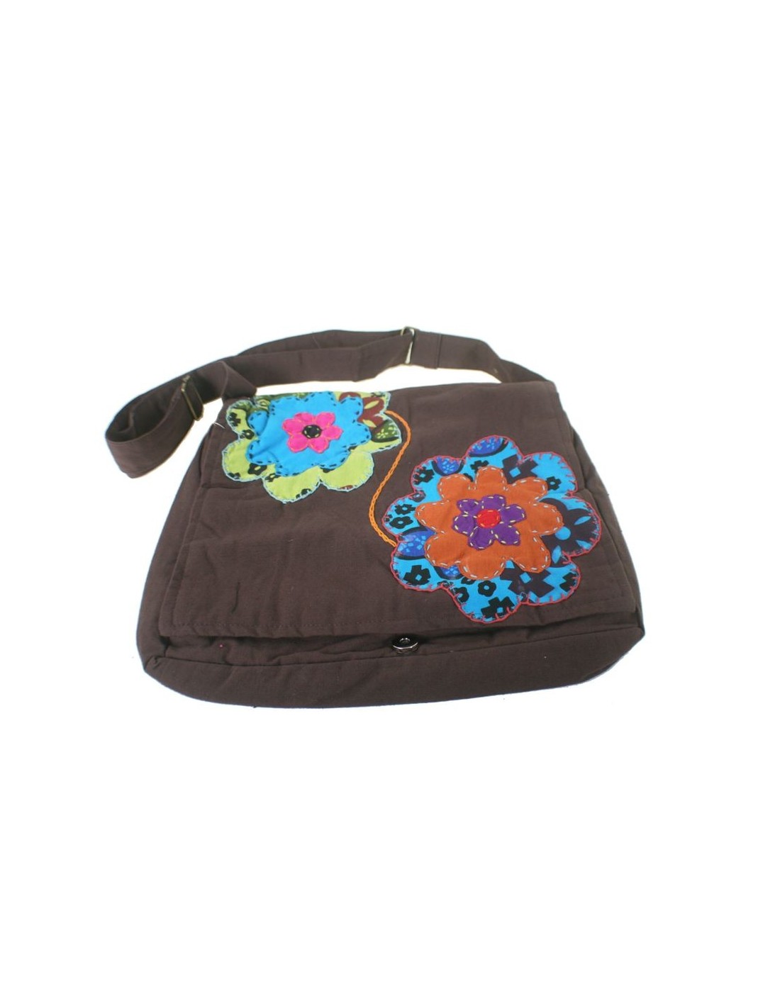 Bolso bandolera multiuso de color marrón y solapa interior con dos compartimientos con cierre en cremallera, diseño exclusivo étnico bordado con parche hippie. Esta prenda ha sido elaborada artesanalmente en el Nepal. Este bolso puede convertirse en un básico para diario en el que podrás llevar tus objetos.
