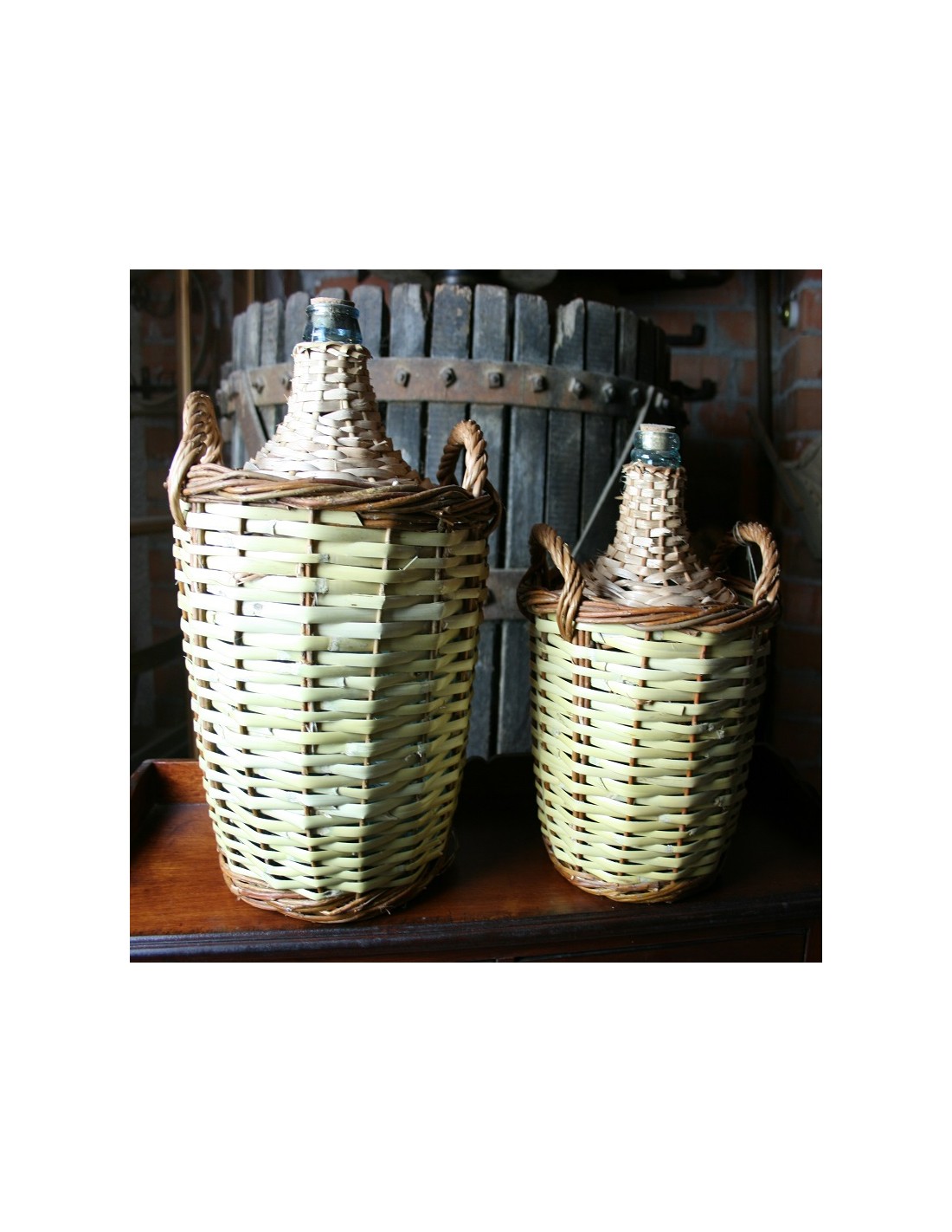 Garrafa damajuana artesanal de caña y vidrio fabricación nacional para almacenar vino y licor.