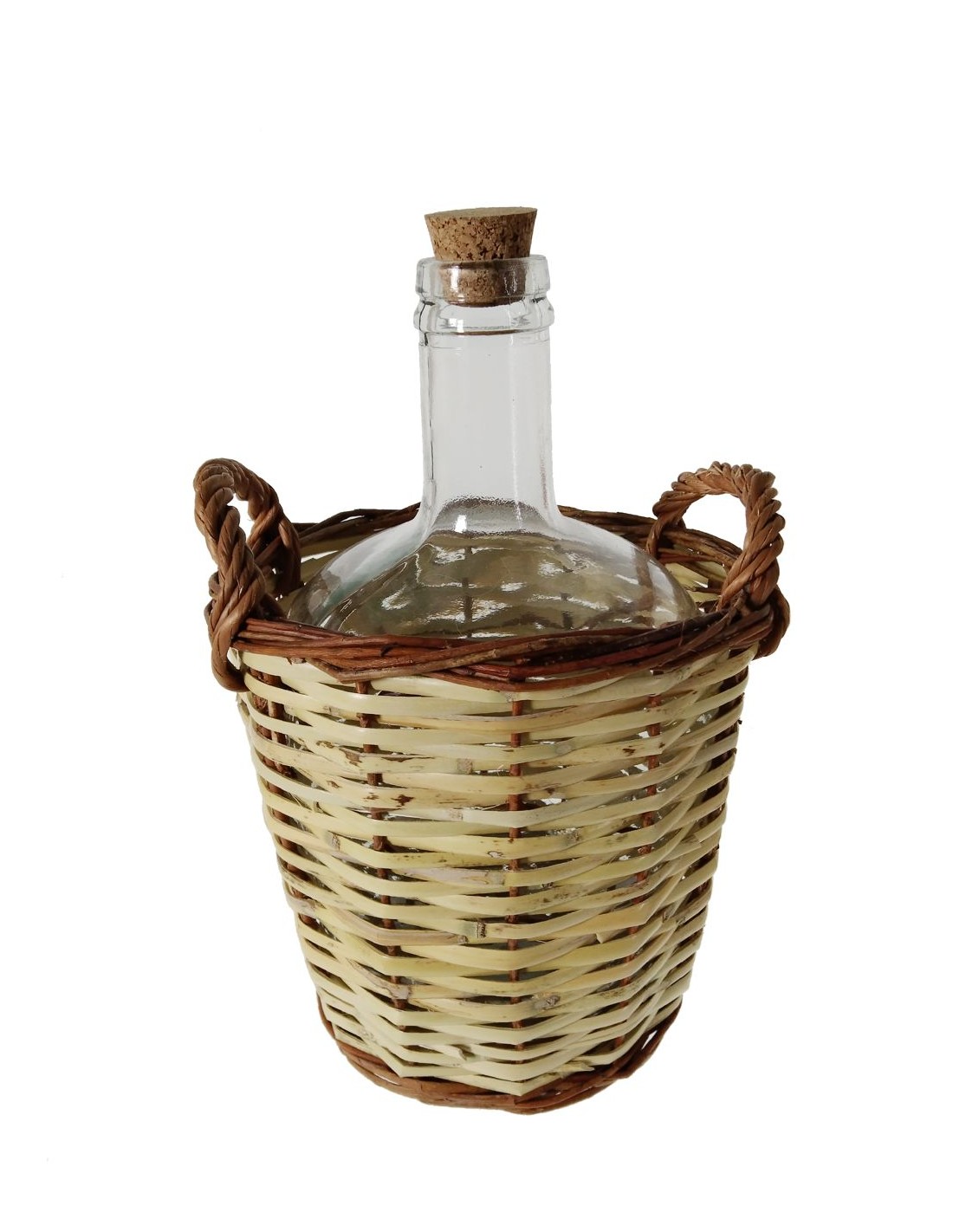 Esta garrafa damajuana de fabricación artesanal, elaborada en caña y vidrio, es perfecta para almacenar vino y licores. Ideal para los amantes de las bebidas artesanales o la compra a granel, combina tradición y respeto por el medio ambiente.