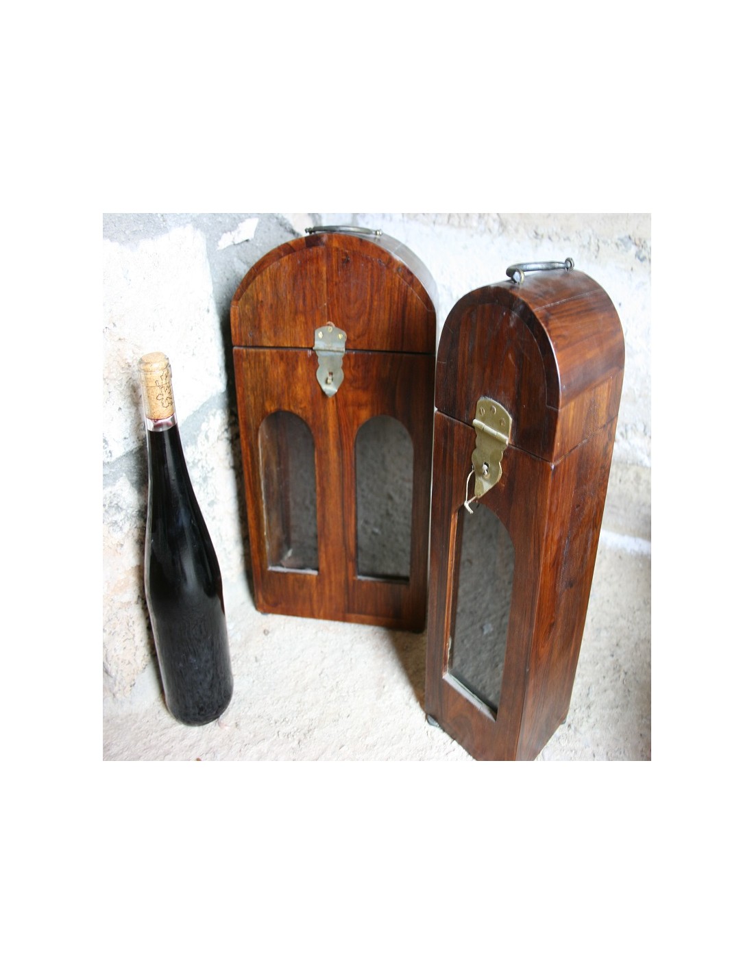 Caja Cofre Mueble Pequeño Botellero en Madera Maciza de Acacia para una Botella de Vino Estilo Rústico. Medidas: 40x12x12 cm.
