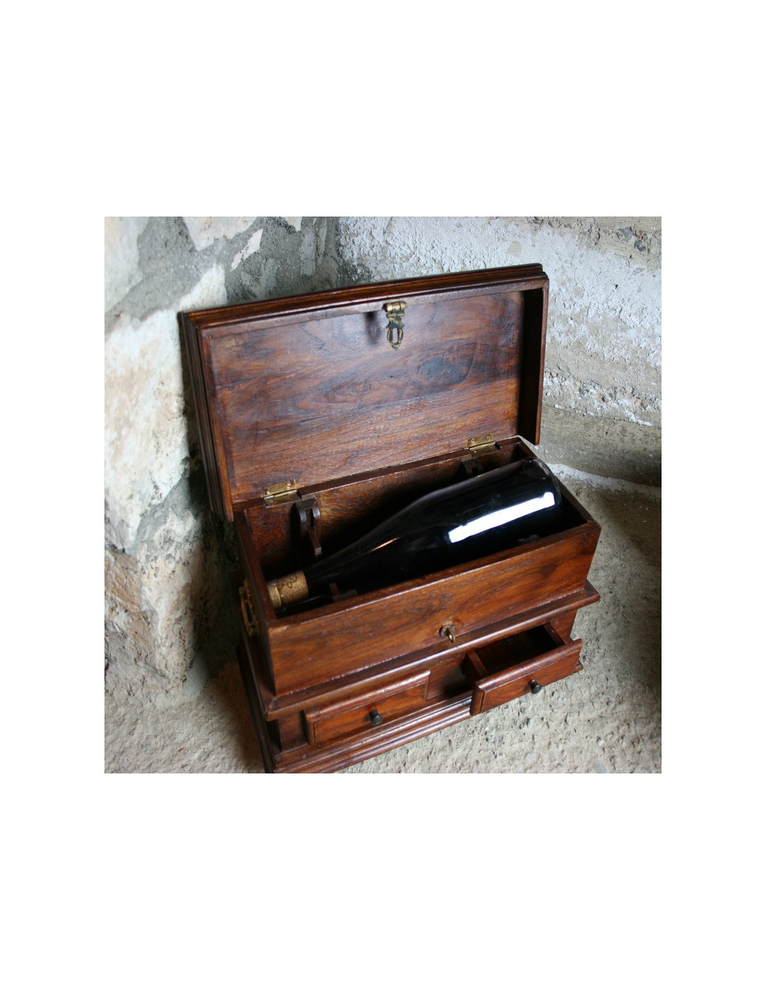 Caja Cofre Mueble Pequeño Botellero en Madera Maciza de Acacia para Botella de Vino Estilo Rústico. Medidas: 23x40x19 cm.