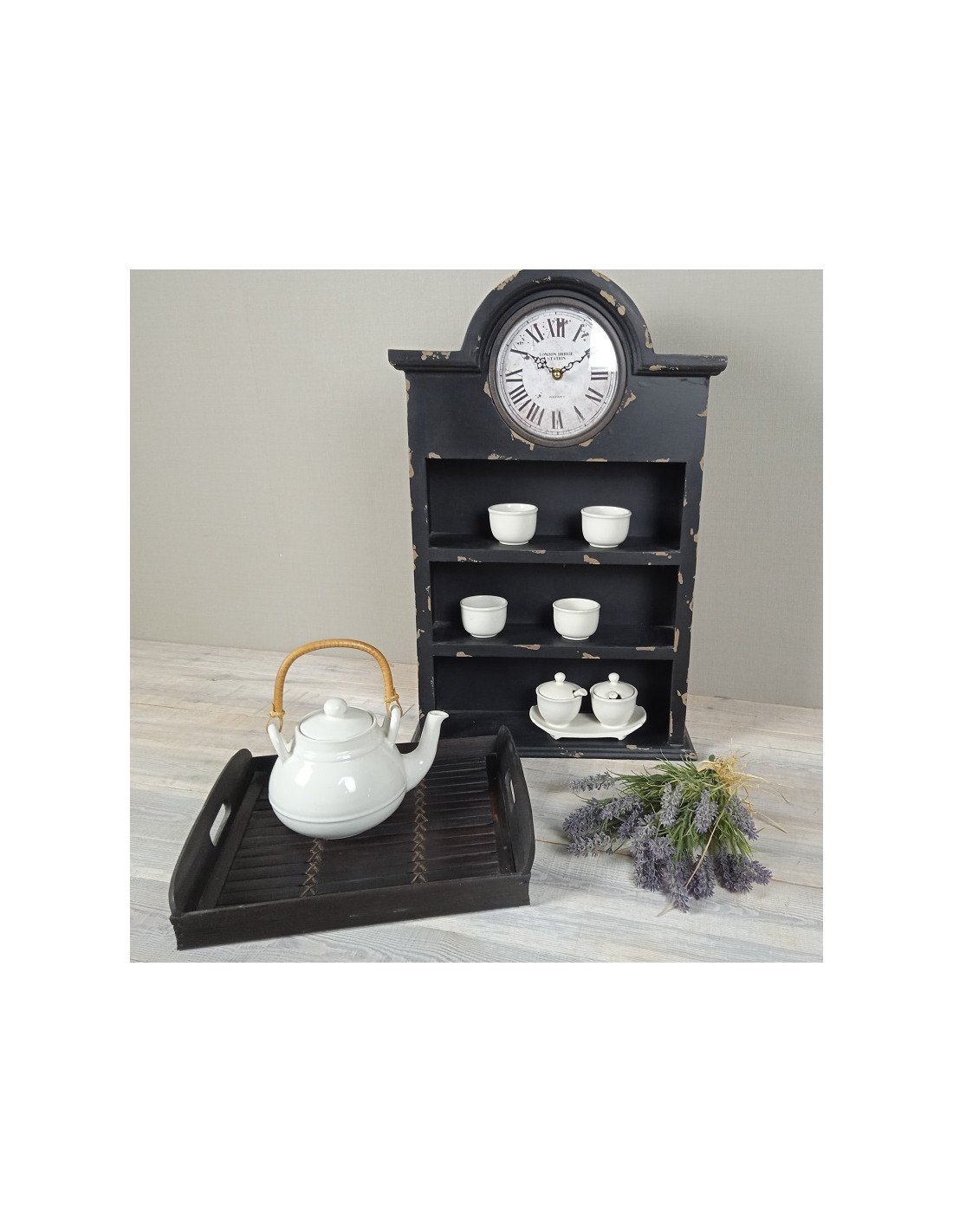 Conjunto Té de porcelana con bandeja de bambú con un diseño clásico y sencillez acompañado con una bandeja de bambú color oscuro. Una opción perfecta para sorprender a tus invitados con elegancia.