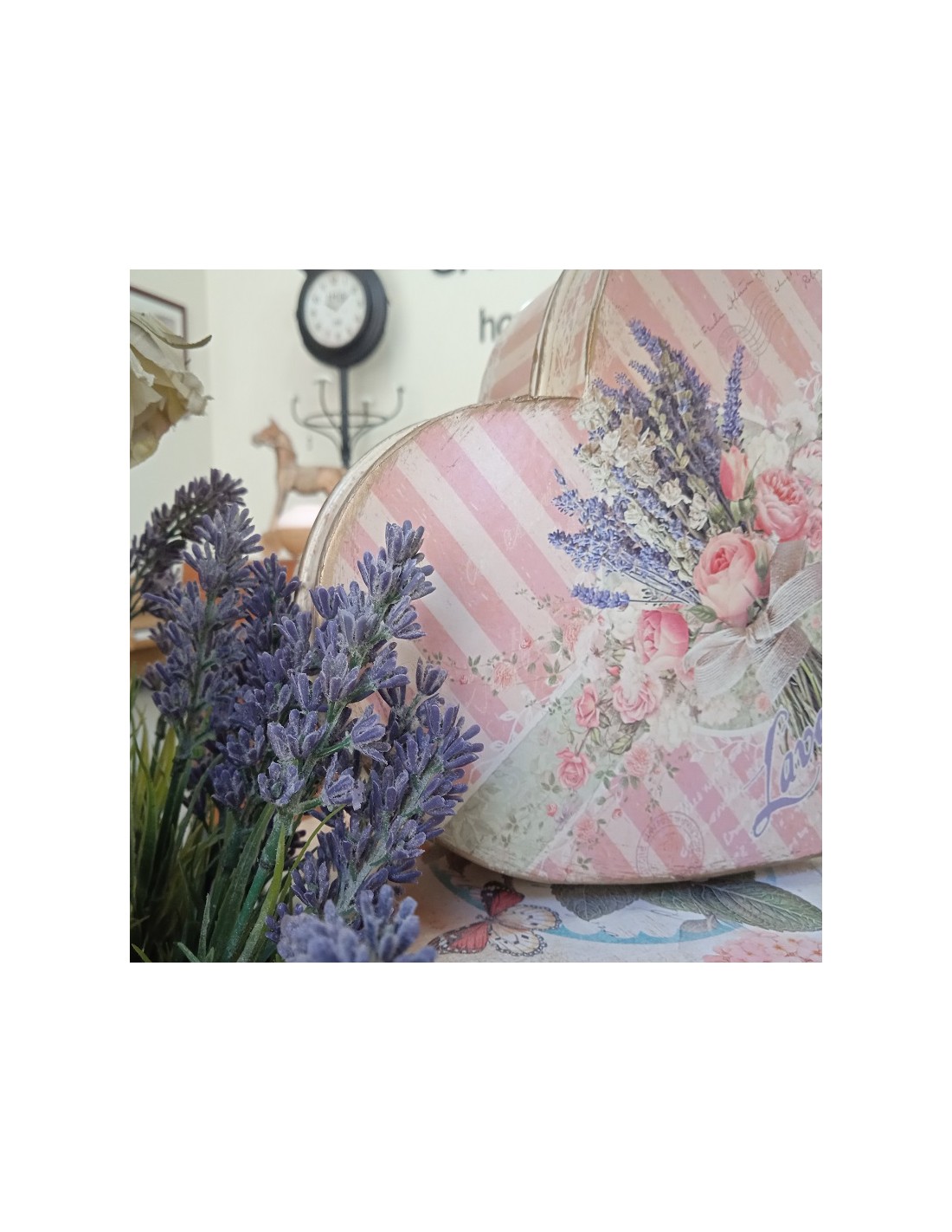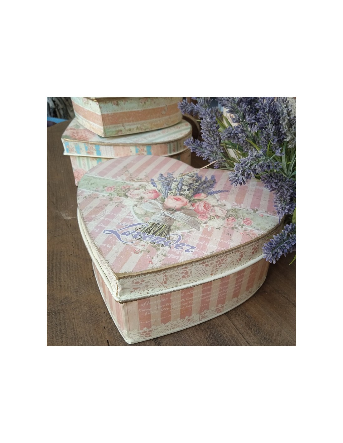 Caja en forma de corazón estilo vintage decorada con flores en color tonos pastel. Es una caja para hacer un bonito regalo en un momento único e inolvidable y poner en el interior lo que más te guste. También es una caja muy decorativa para tu hogar.