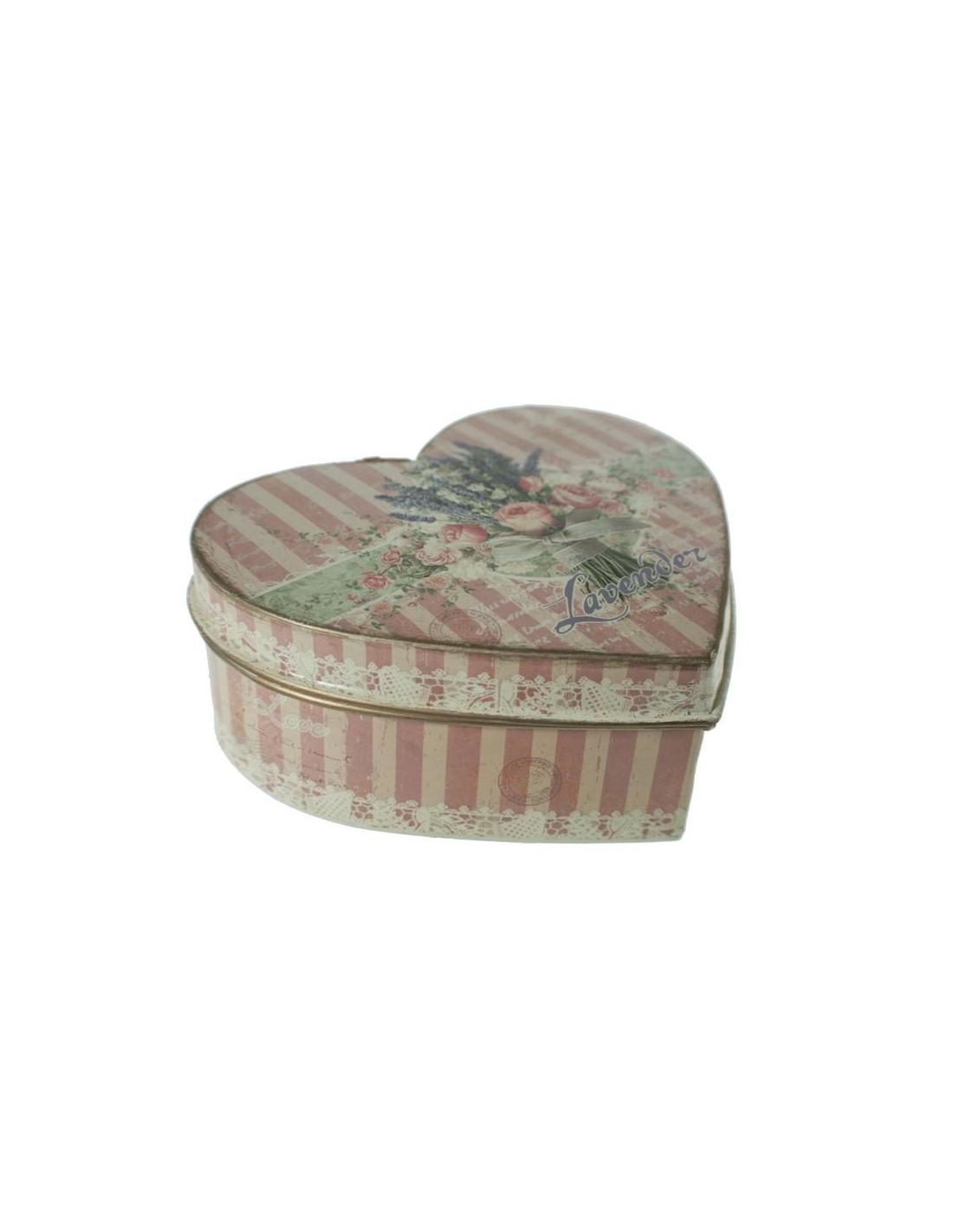 Caja de metal mediana con forma de corazón decorada de estilo muy romántico, ideal para decoración de tu hogar y a la vez darle utilidad de almacenamiento. Si eres una persona romántica, cariñosa, con esta caja sorprenderás para hacer un regalo especial.