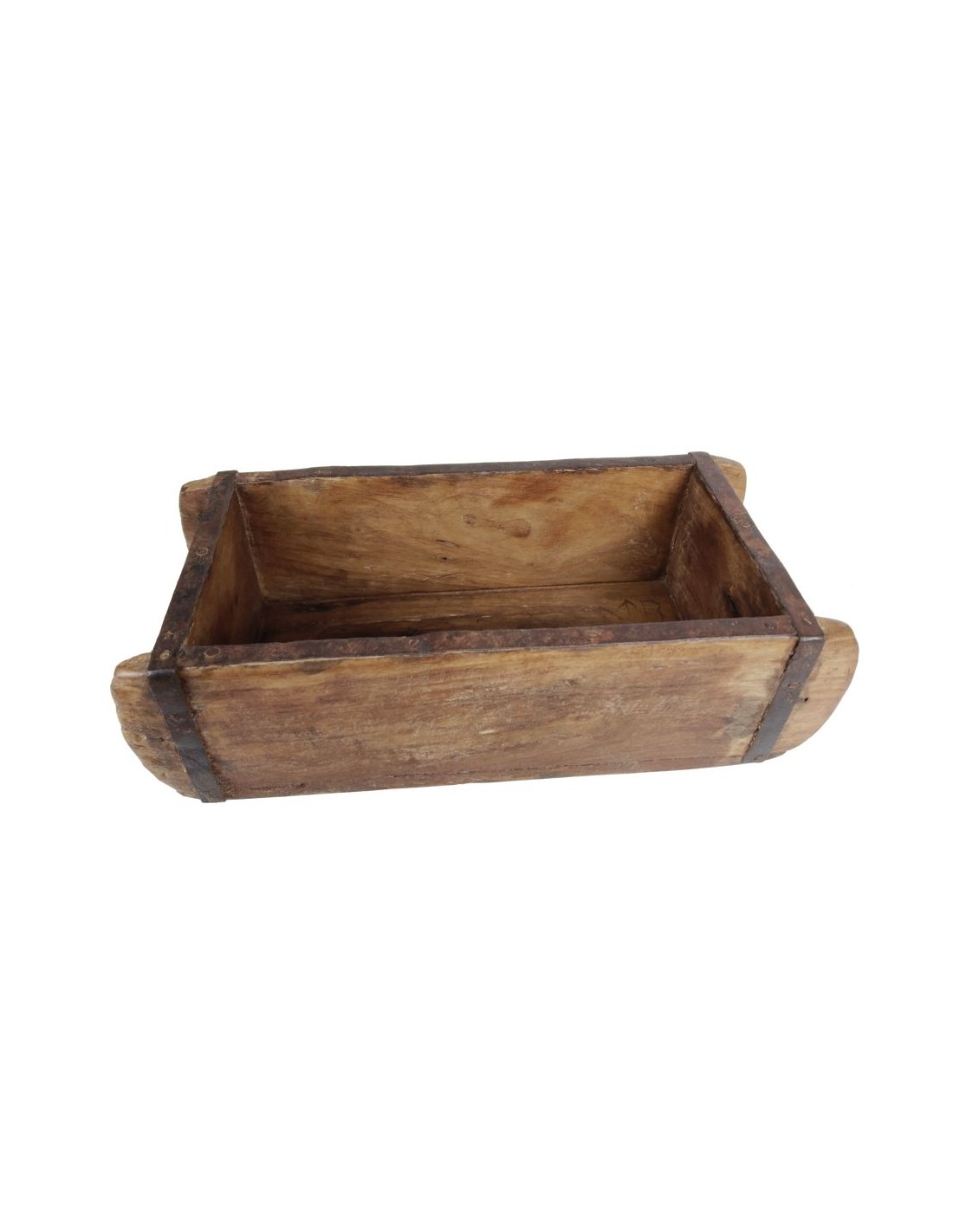 Caja de madera de acacia maciza, hecha a mano y refuerzos de hierro que aportan un toque rústico y decorativo. Su diseño versátil permite utilizarla en diferentes espacios del hogar.