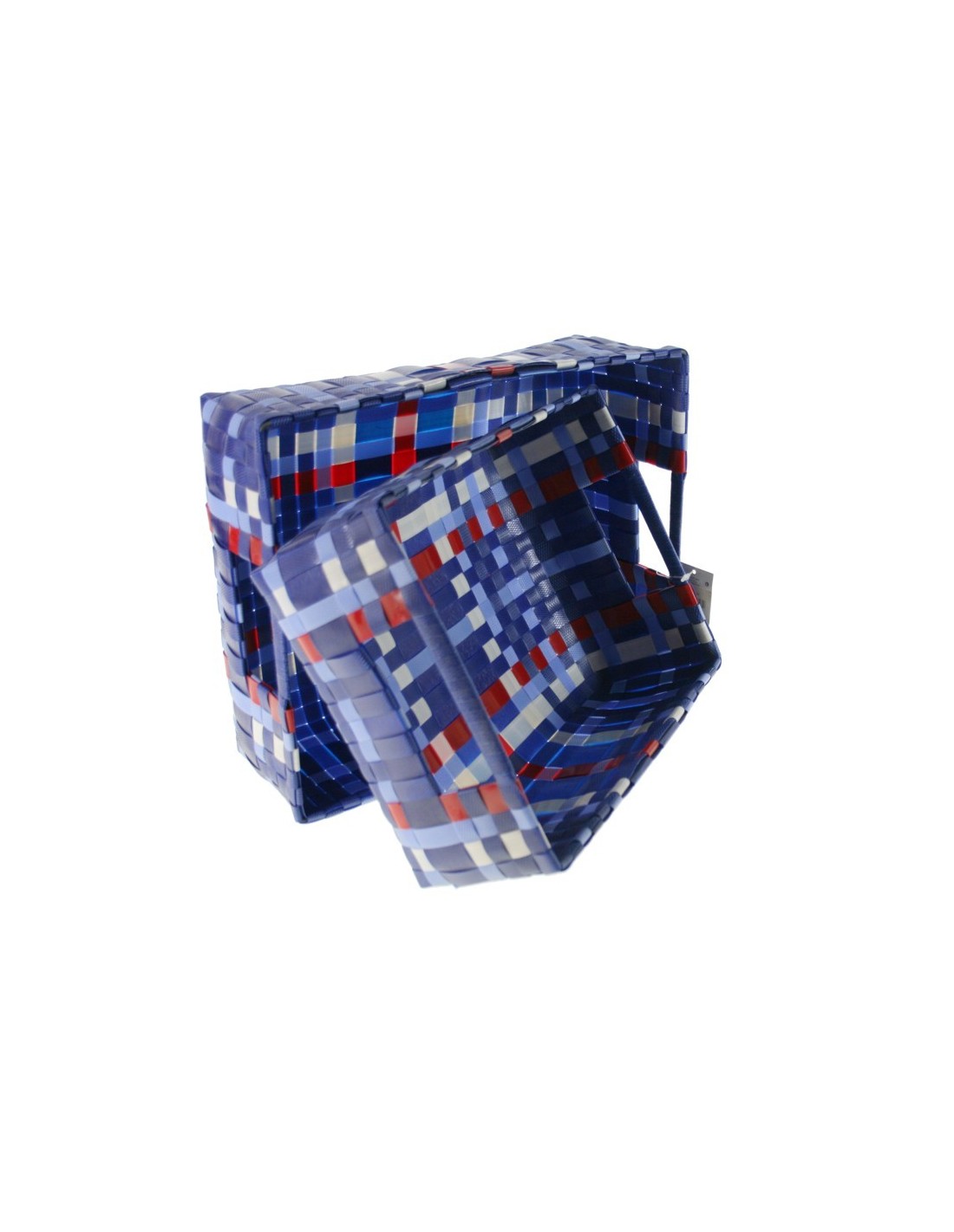 Juego de dos cuévanos de fibras sintéticas color azul. Medidas: 33x27-28x22 cm.
