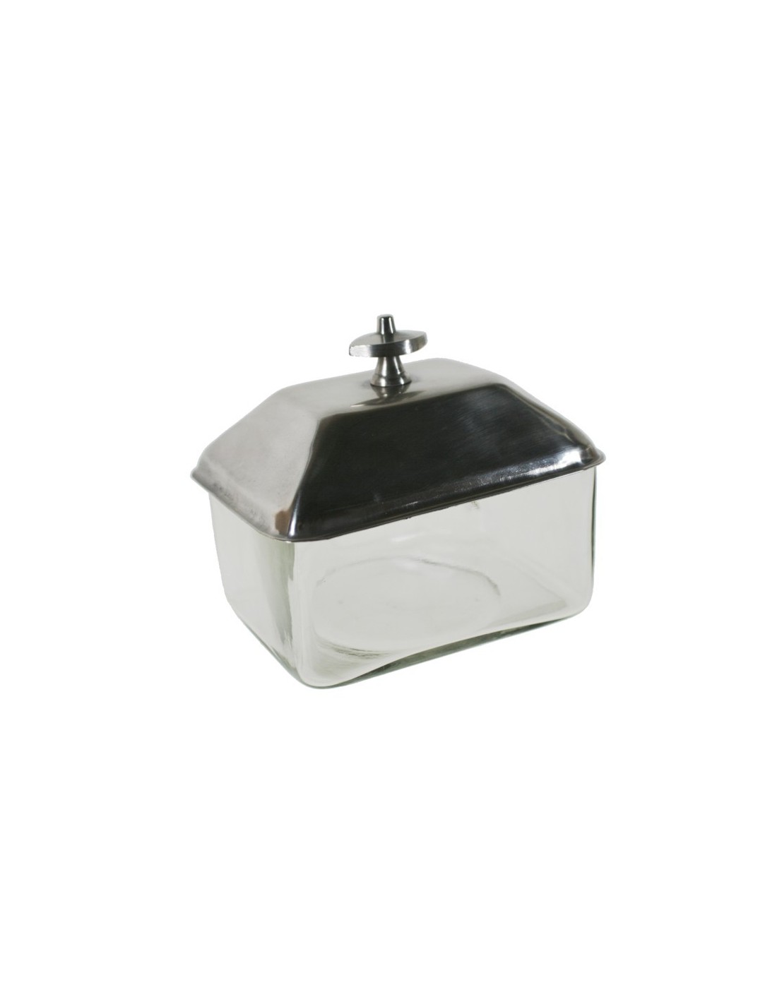 Caja de Cristal con Tapa Metálica Plateada Complemento para Baño o Tocador Estilo Nórdico. Medidas: 11x13x11 cm.