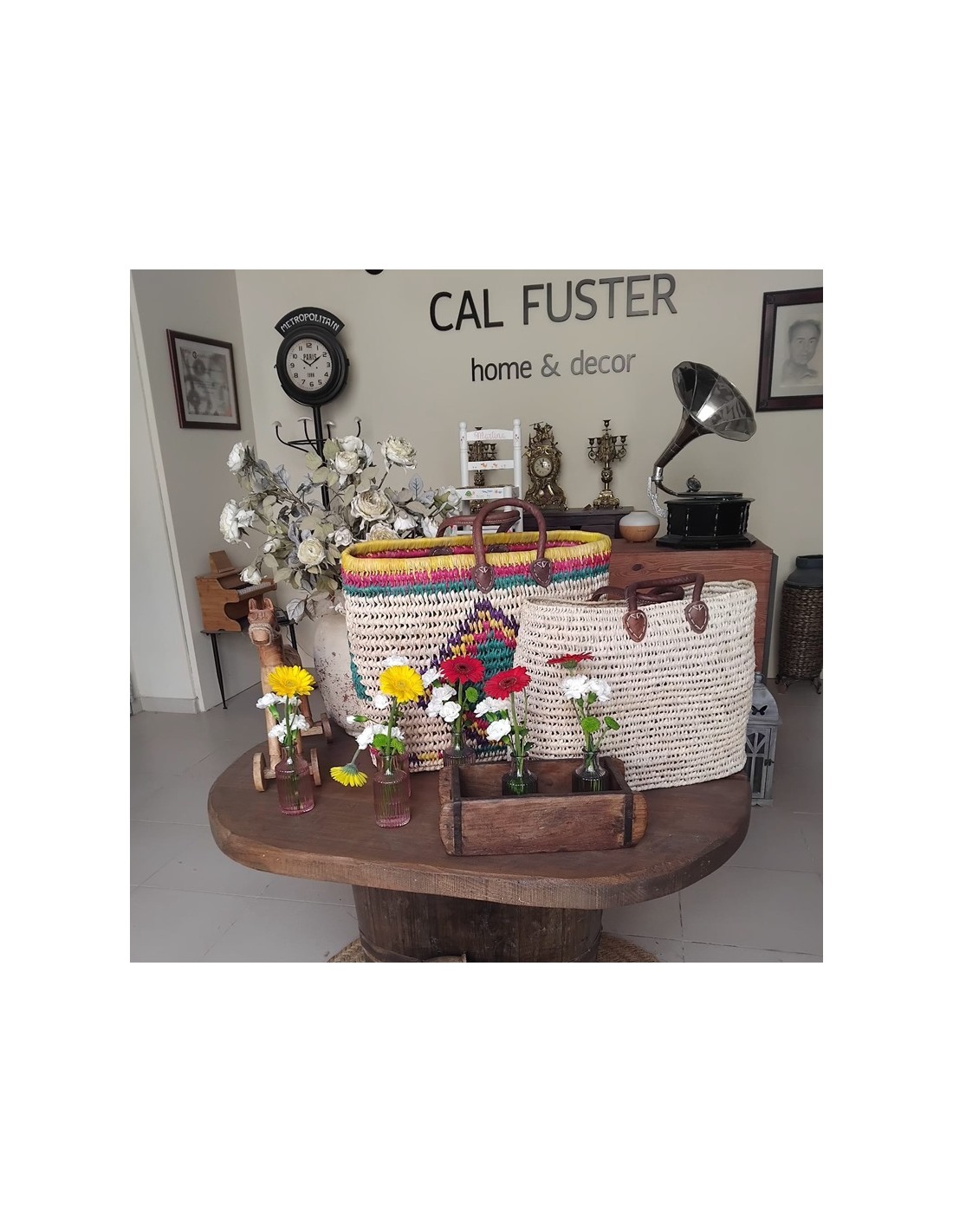 Si buscas una cesta práctica, con encanto y que además aporte un toque de color a tu día a día, esta es perfecta para ti. Elaborada a mano con palma natural y asas de cuero, esta cesta grande combina funcionalidad con estética artesanal.