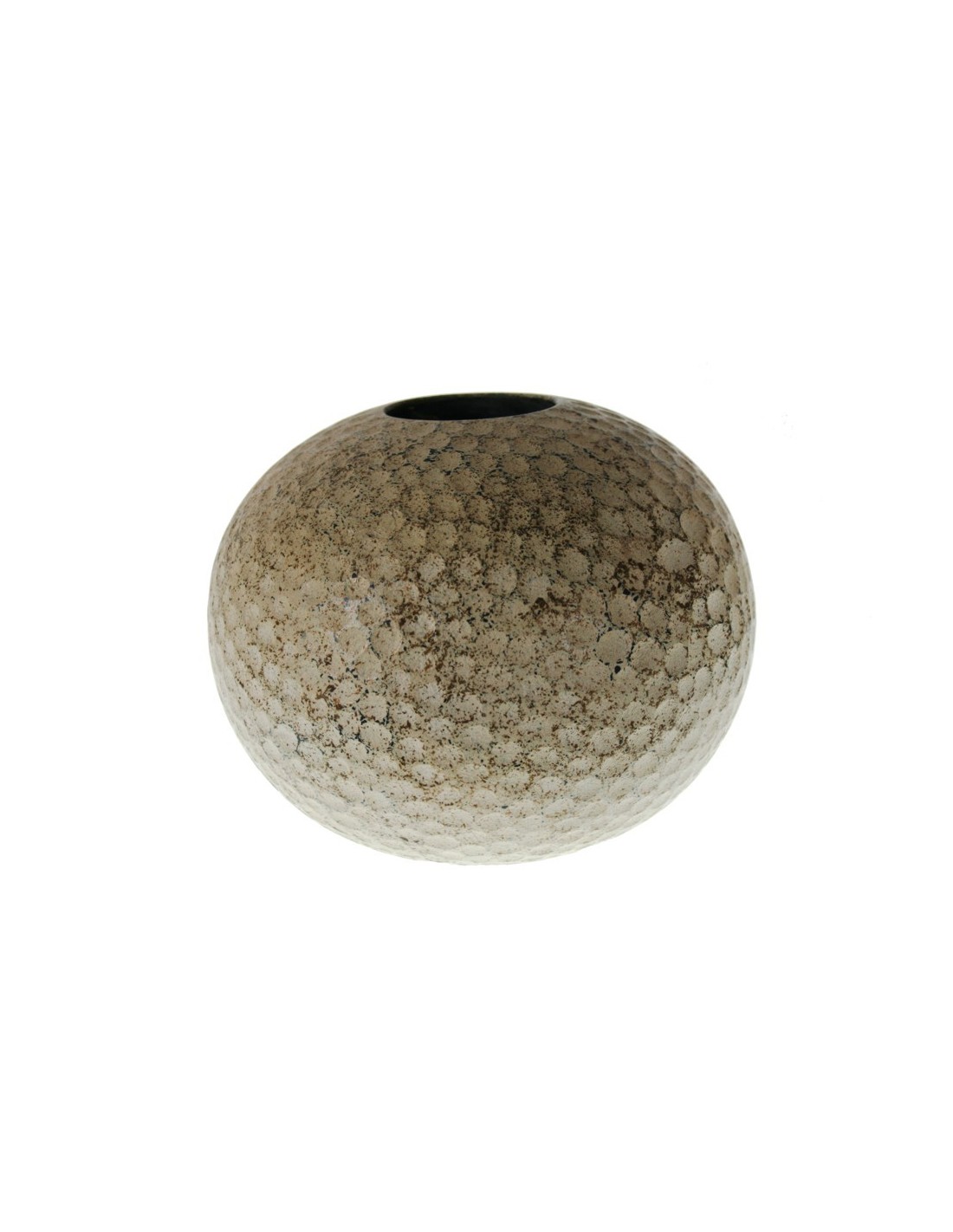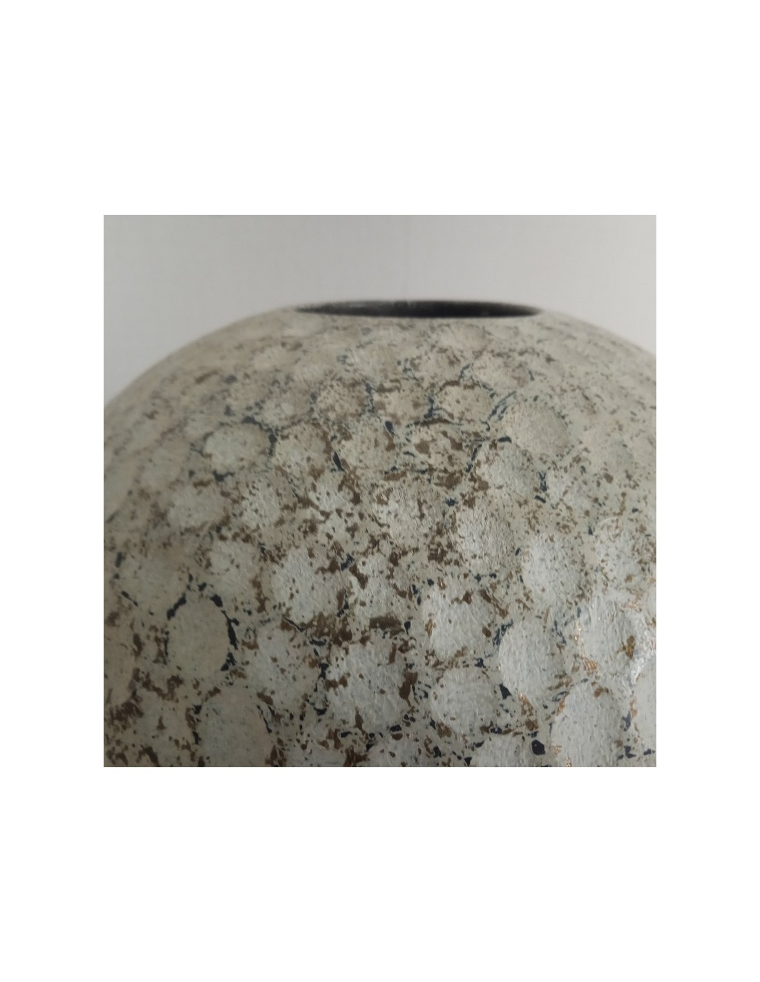 Centro de Mesa o Florero de Madera de Forma Redonda en Color Gris Chispeado Decoración Hogar. Medidas 23xØ27 cm.