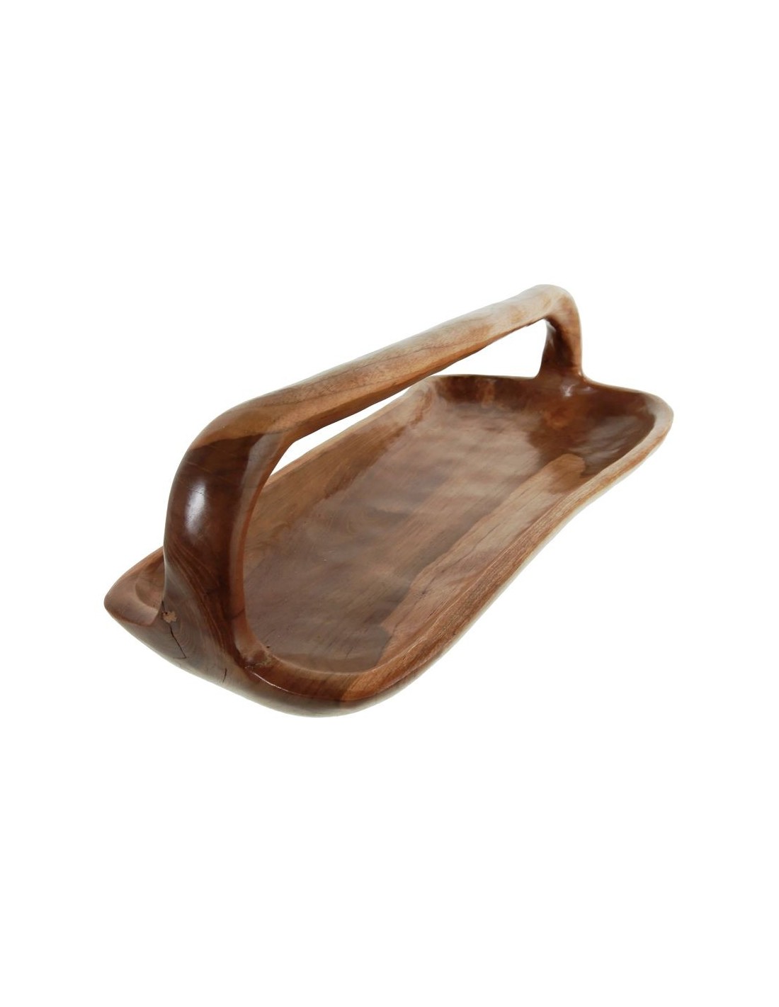 Centro de mesa en madera maciza de teca con asa forma irregular decoración hogar nórdico. Medidas: 18x60x32 cm.