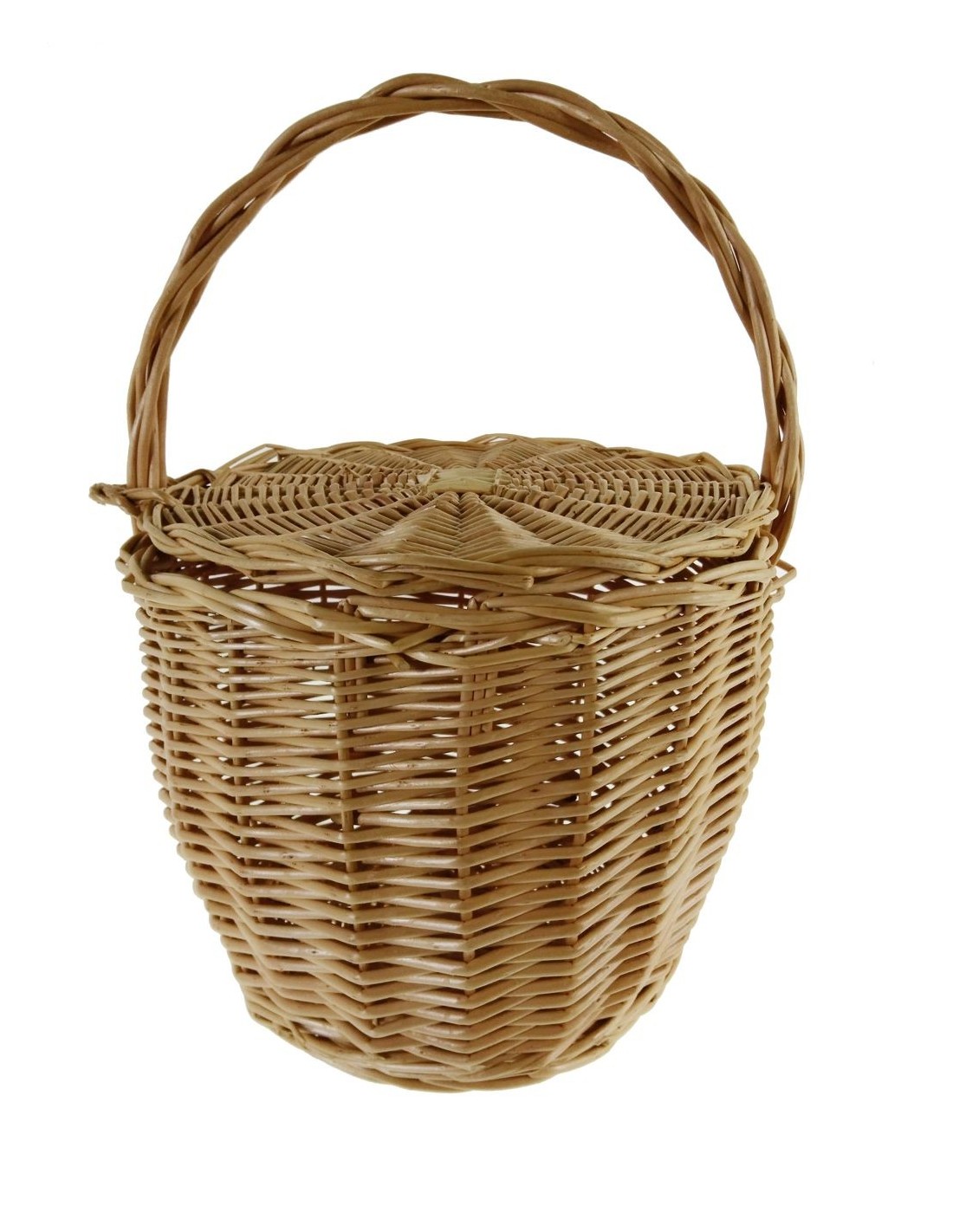 Cesta de mimbre redondo con asa y tapa para almacenamiento de alimentos y ordenación del hogar. Medidas: 37x25x25 cm.