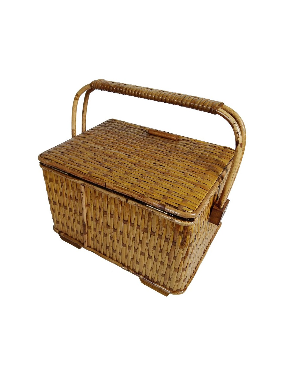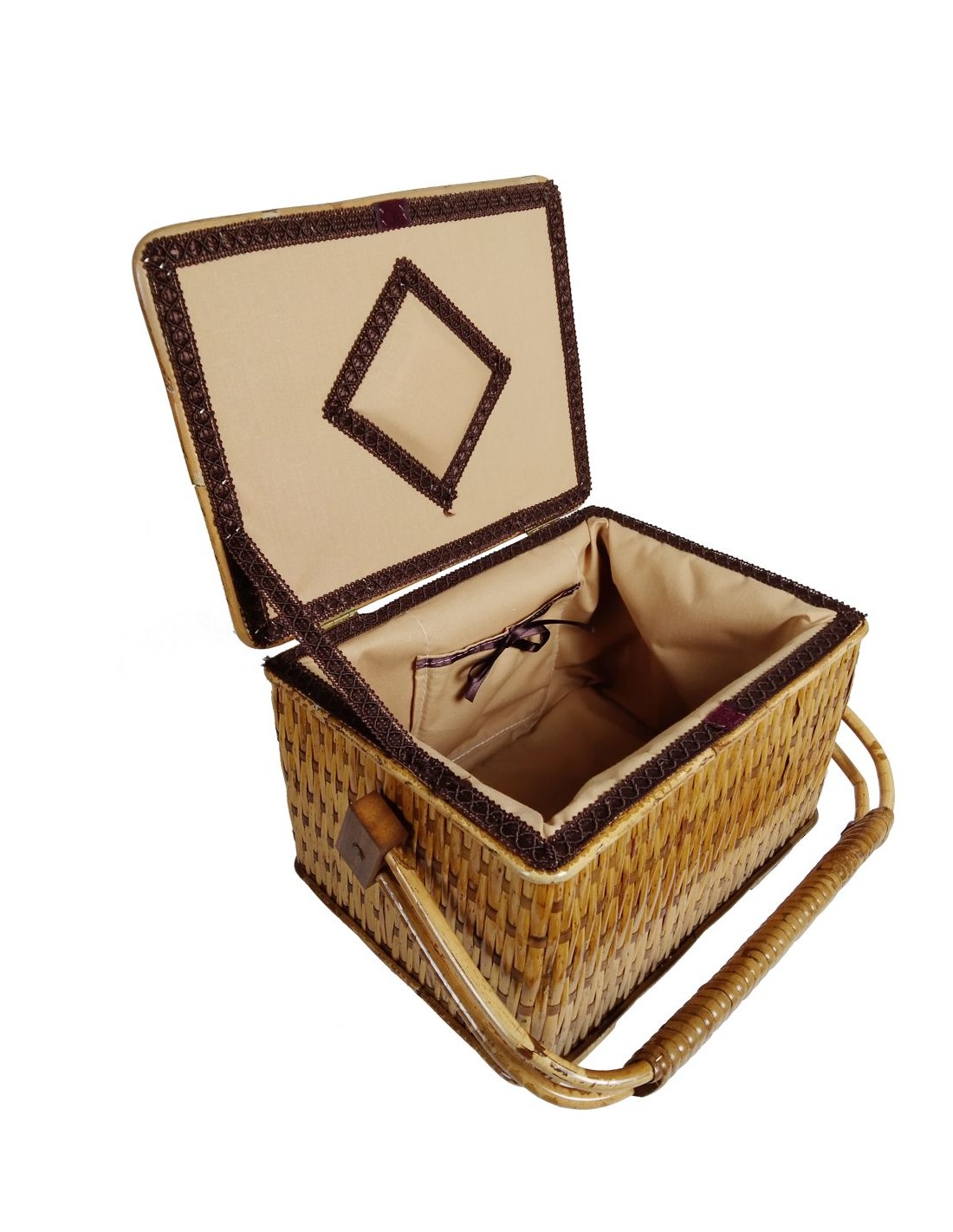 Costurero de Mimbre Grande con Asa, cesto Almacenamiento de labores de costura. Medidas: 18x30x20 cm.