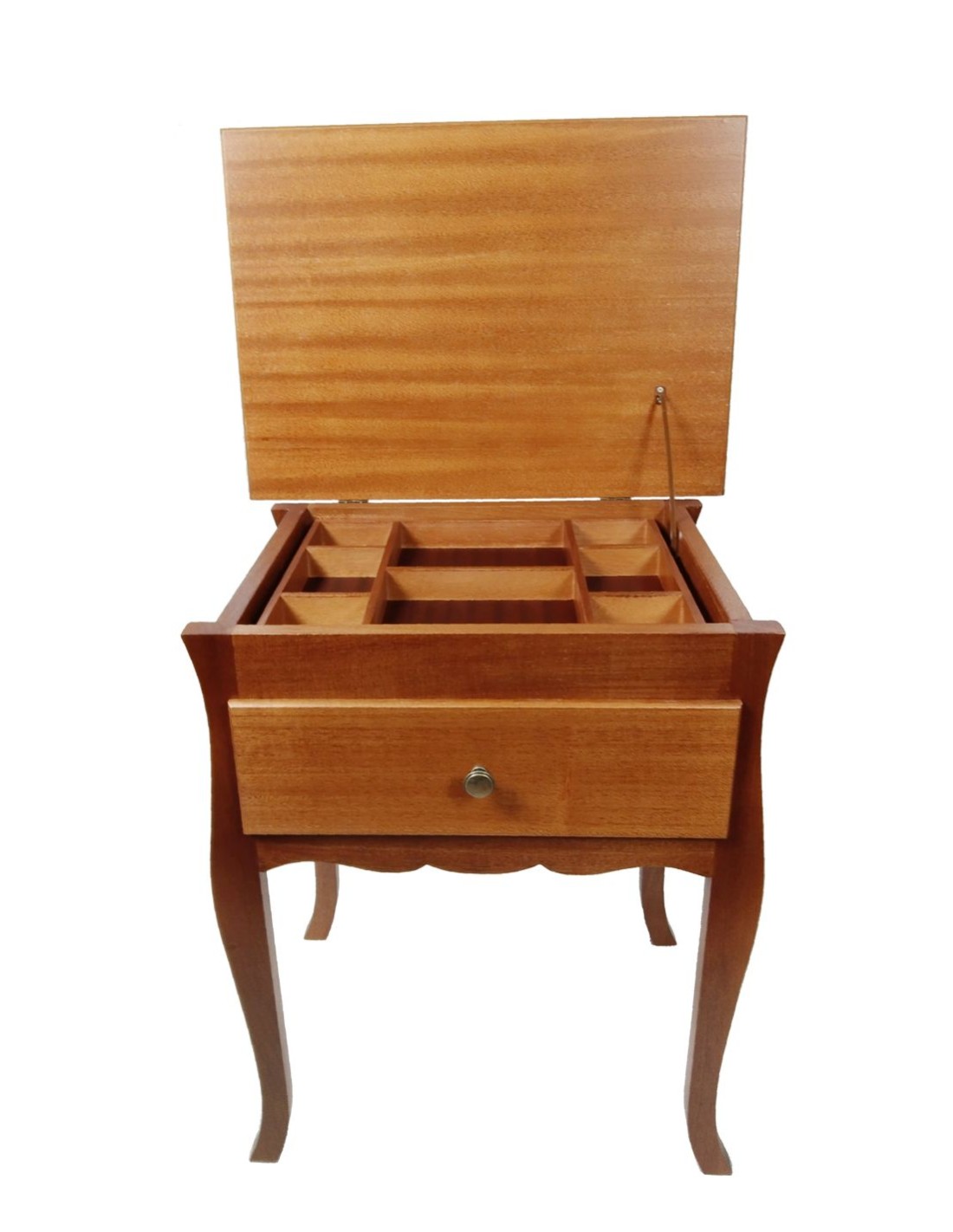 Costurero de Madera Maciza con patas, Cajón Central y Casilleros en tapa Organizador de Costura. Medidas: 66x55x39 cm.