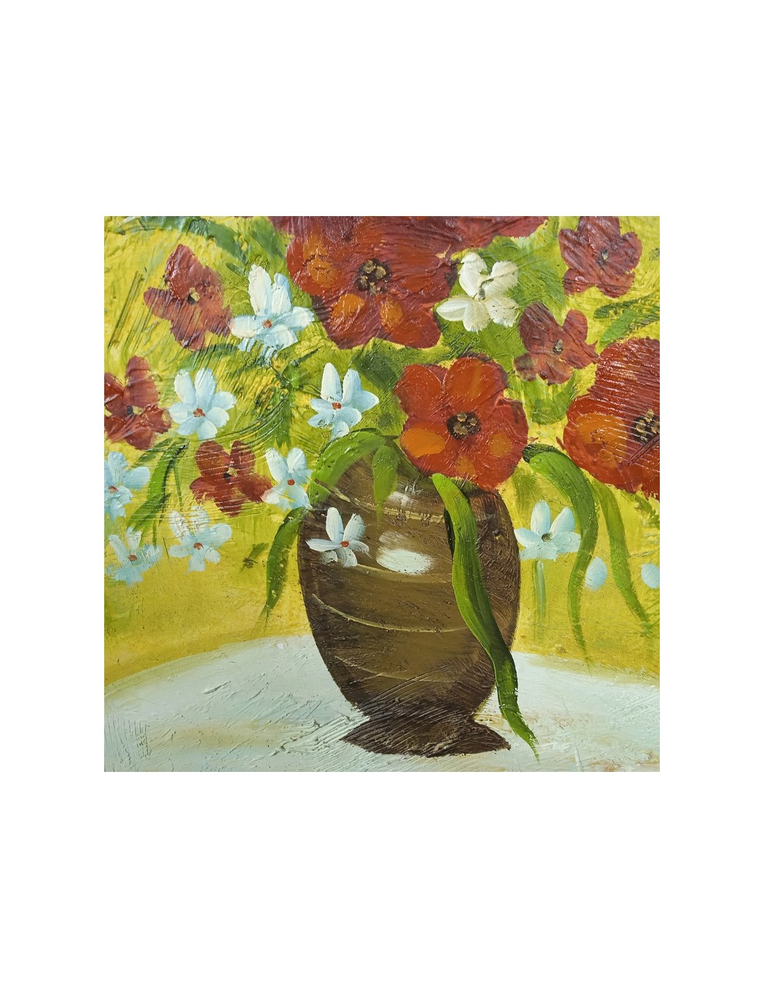 Cuadro pintado al óleo con motivos florales. Medidas: 87x61 cm.