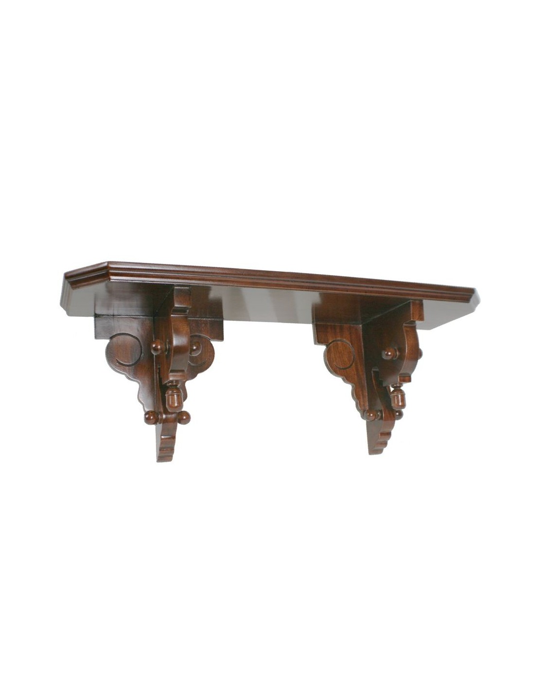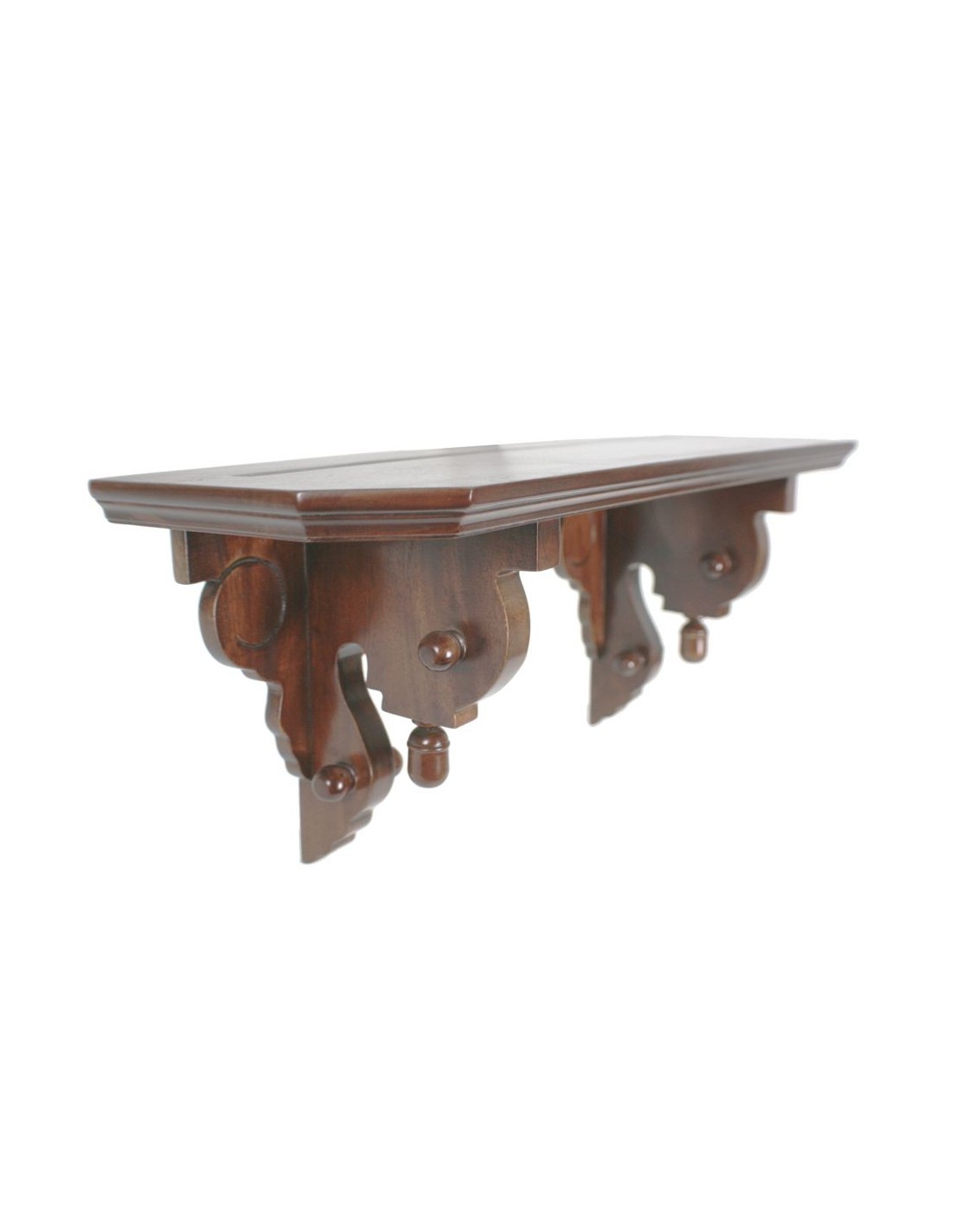 Ménsula Estantería Alargada con Talla Madera Maciza de Caoba para Pared estilo Clásico para el Hogar. Medidas: 23x60x17 cm.