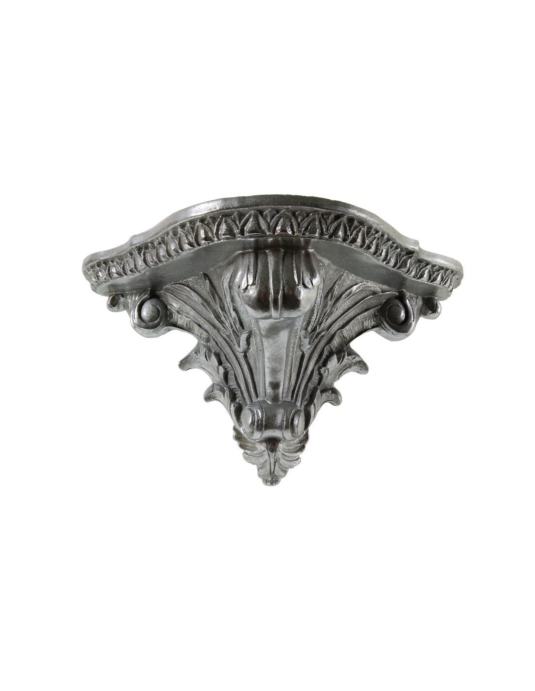 Ménsula de resina tallada estilo clásico acabado color plata envejecida para colocar en pared. Medidas: 21x36x16 cm.