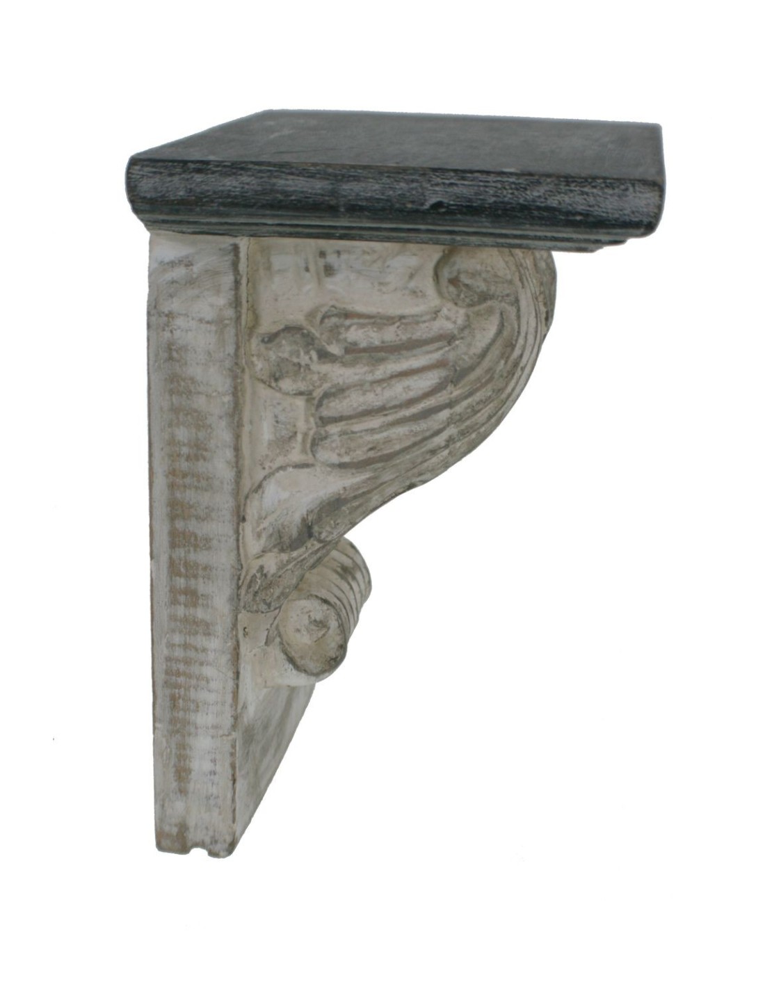 Ménsula de Madera Tallada Estilo Antiguo Vintage Blanco/Gris Envejecido.