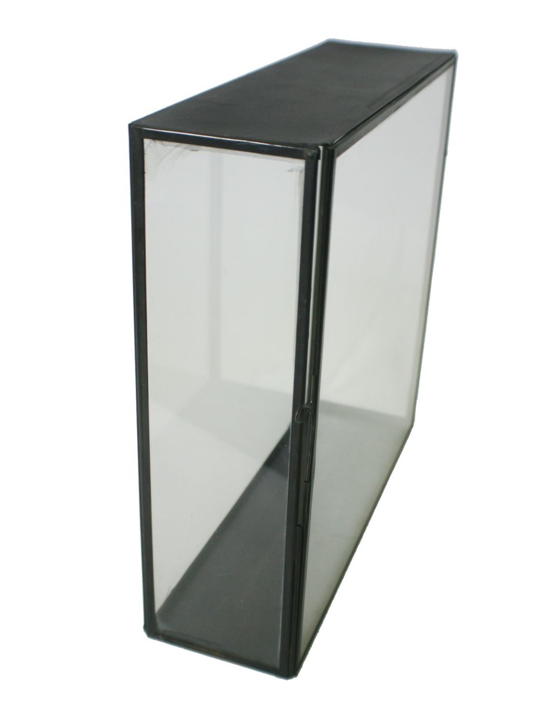 Urna de Cristal Rectangular Alta con Borde Metálico para Exhibir Objetos Decoración Hogar estilo Retro. Medidas: 35x35x11 cm.