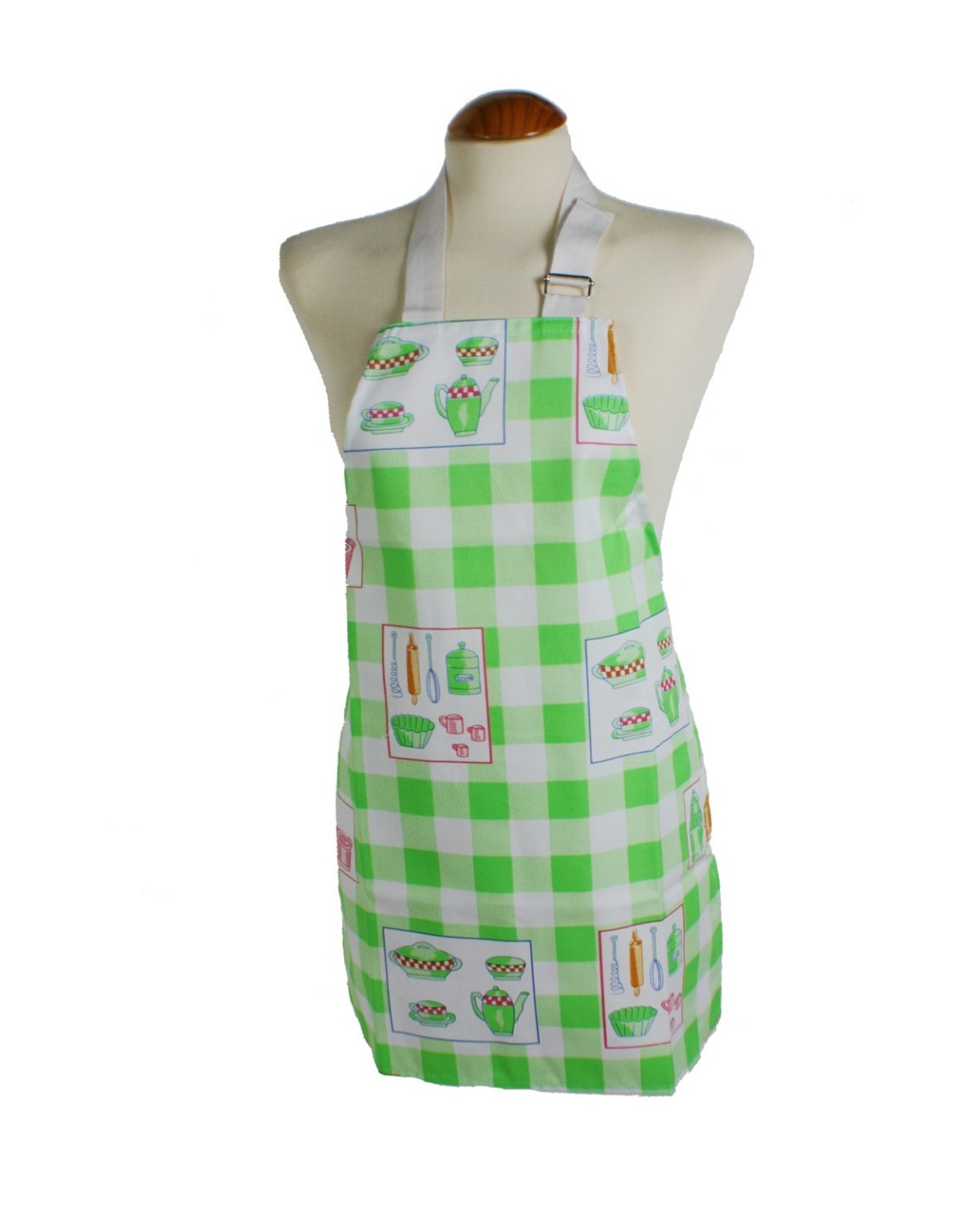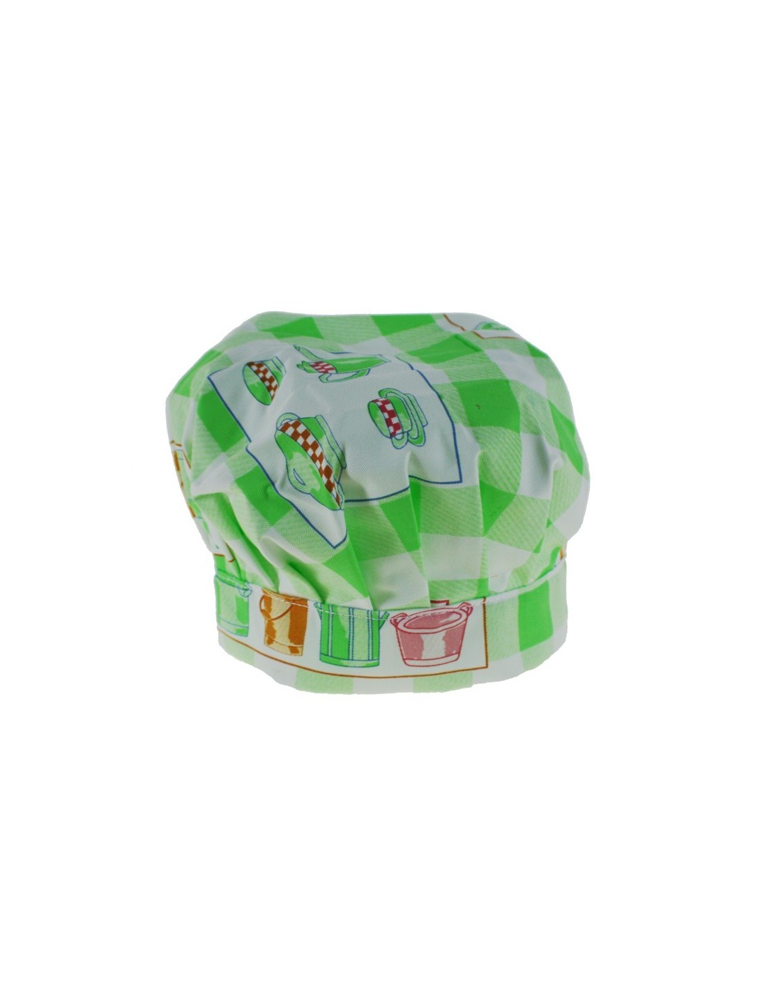Delantal infantil cocina con gorro y peto ajustable color verde a cuadros. Medidas: 65x50 cm.
