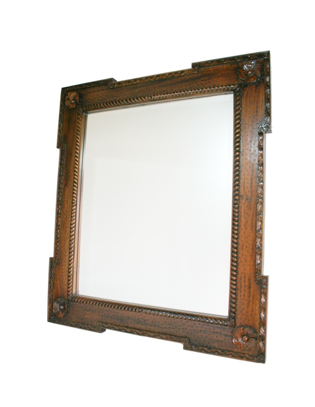 Espejo de Pared de Madera Maciza Caoba Tallada y Cristal Biselado Decoración Clásica para el Hogar. Medidas: 100x88x5 cm.