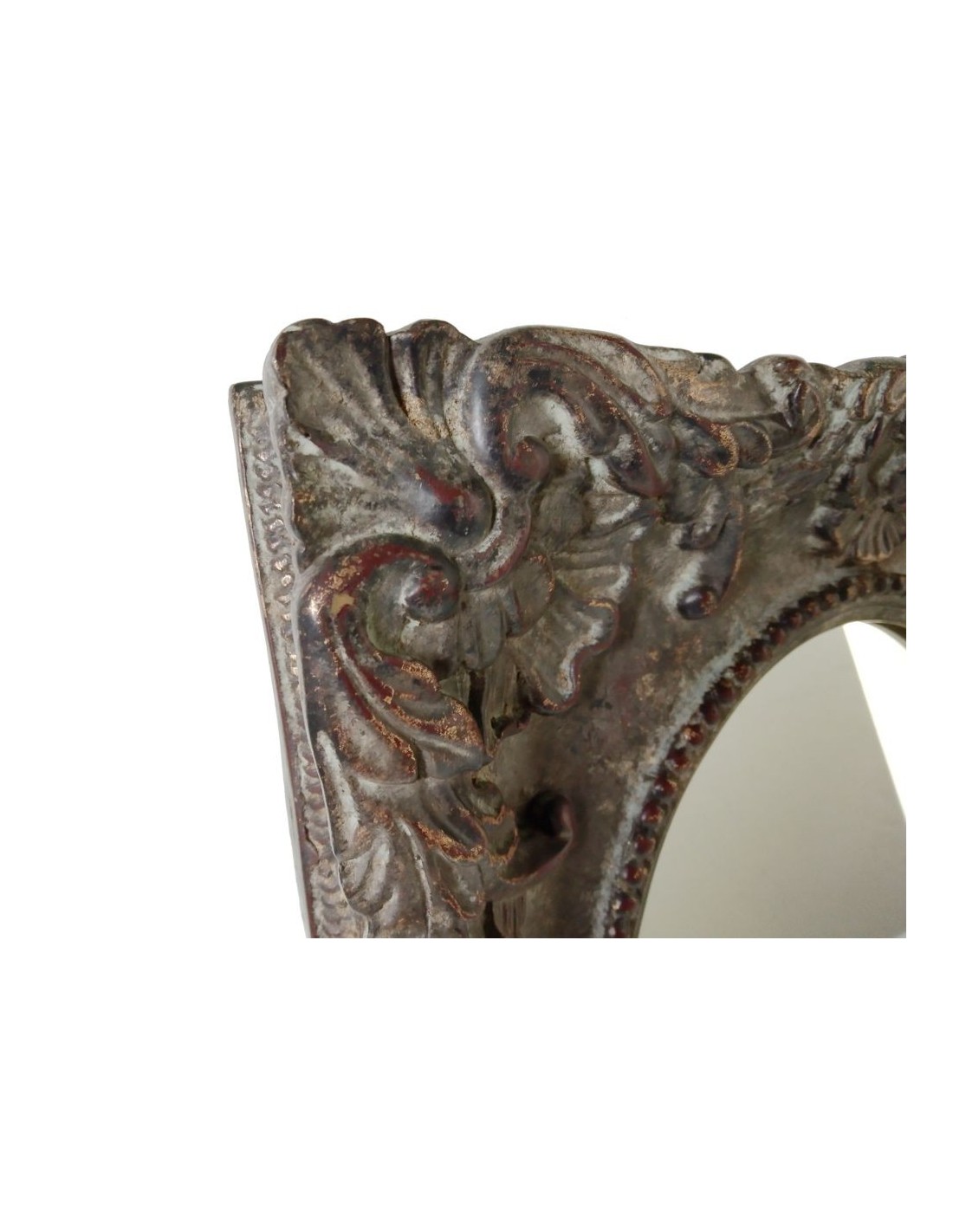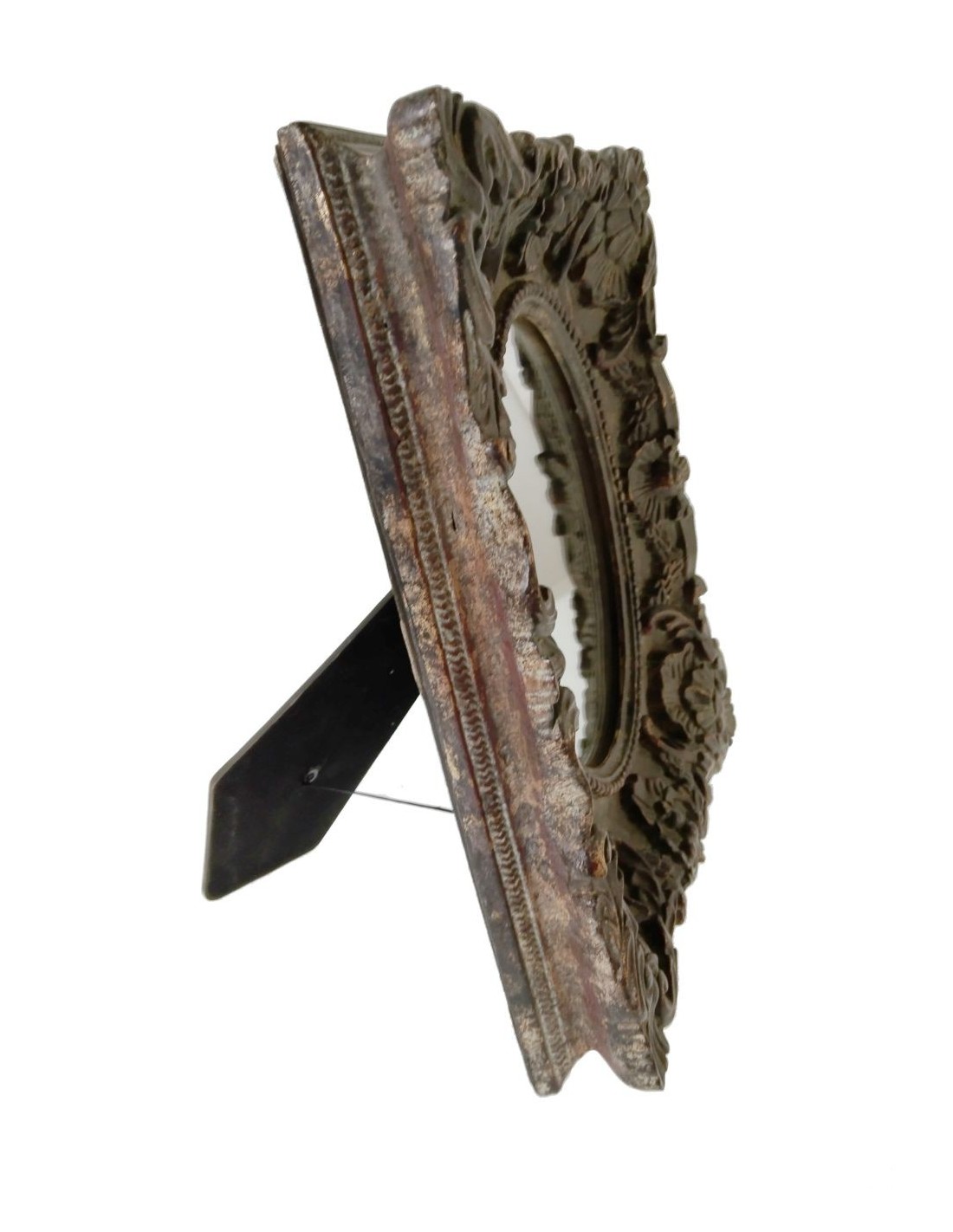 Espejo de sobremesa estilo barroco acabado envejecido cristal ovalado. Medidas totales: 40x33x7 cm.