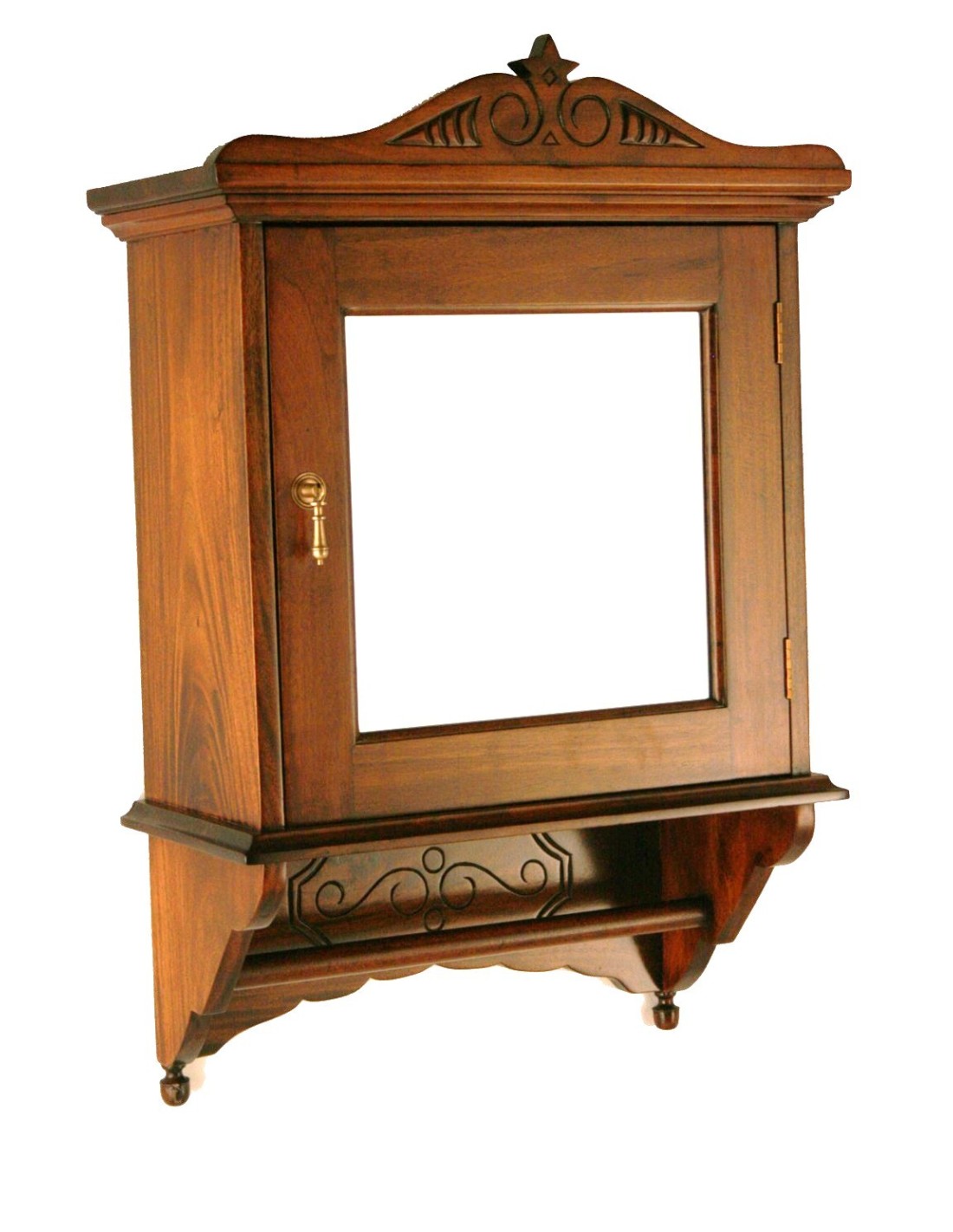 Espejo Armario de Madera con talla de Caoba y Colgador Estilo Colonial Decoración Hogar. Medidas totales: 87x55x25 cm.