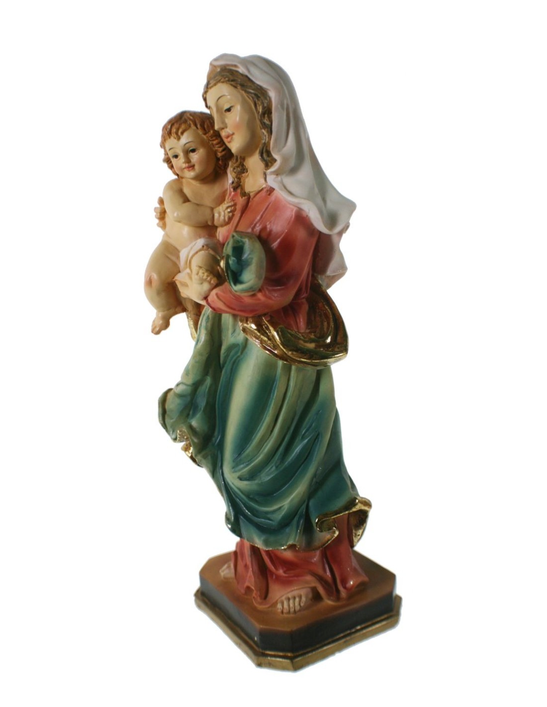 Figura Religiosa de la Virgen María con Niño Jesús – Escultura Pintada a Mano.