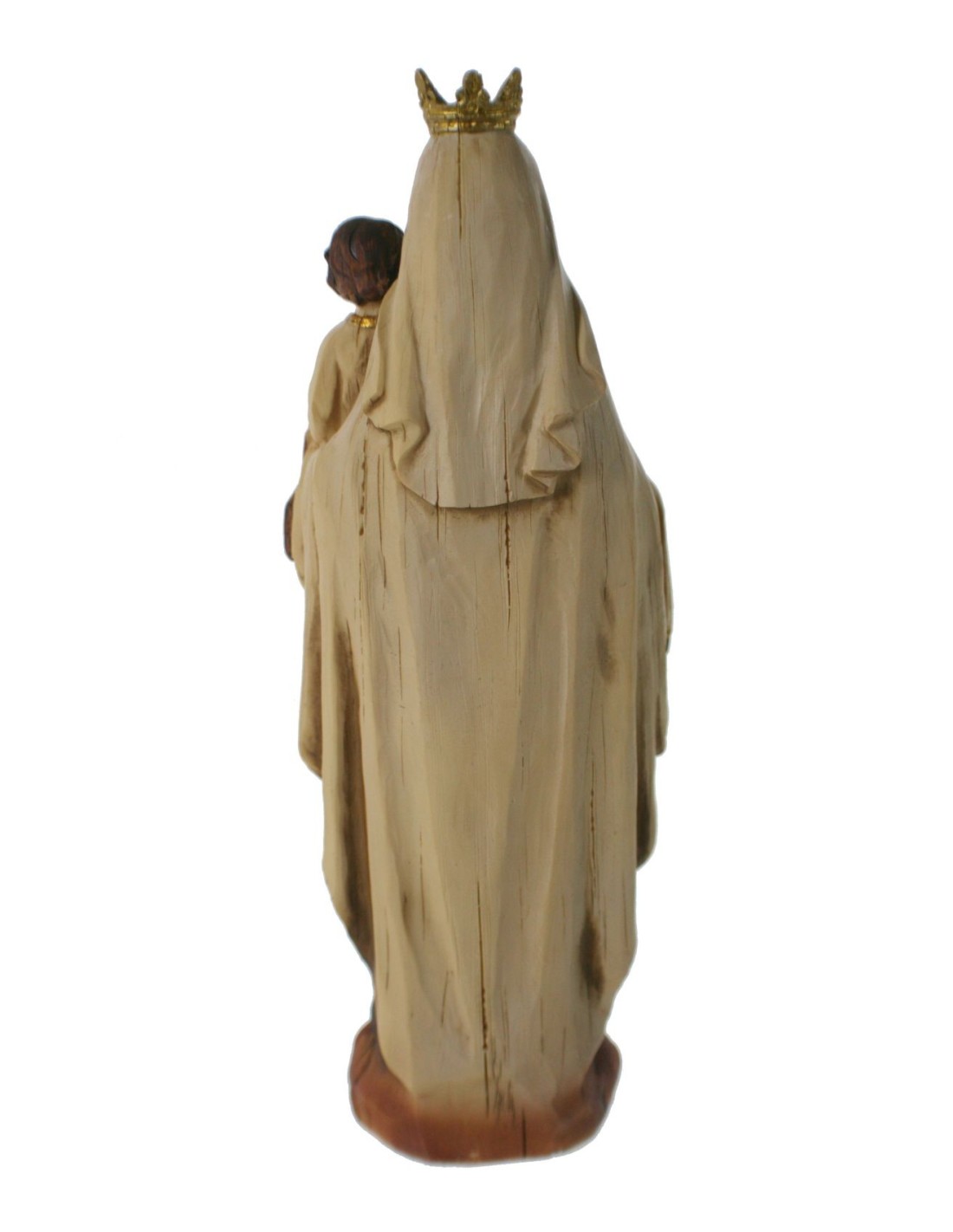 Escultura Figura Religiosa de Culto Virgen del Carmen con estuche Acabado Estilo Madera Pintado a Mano. Medidas: 20 cm.