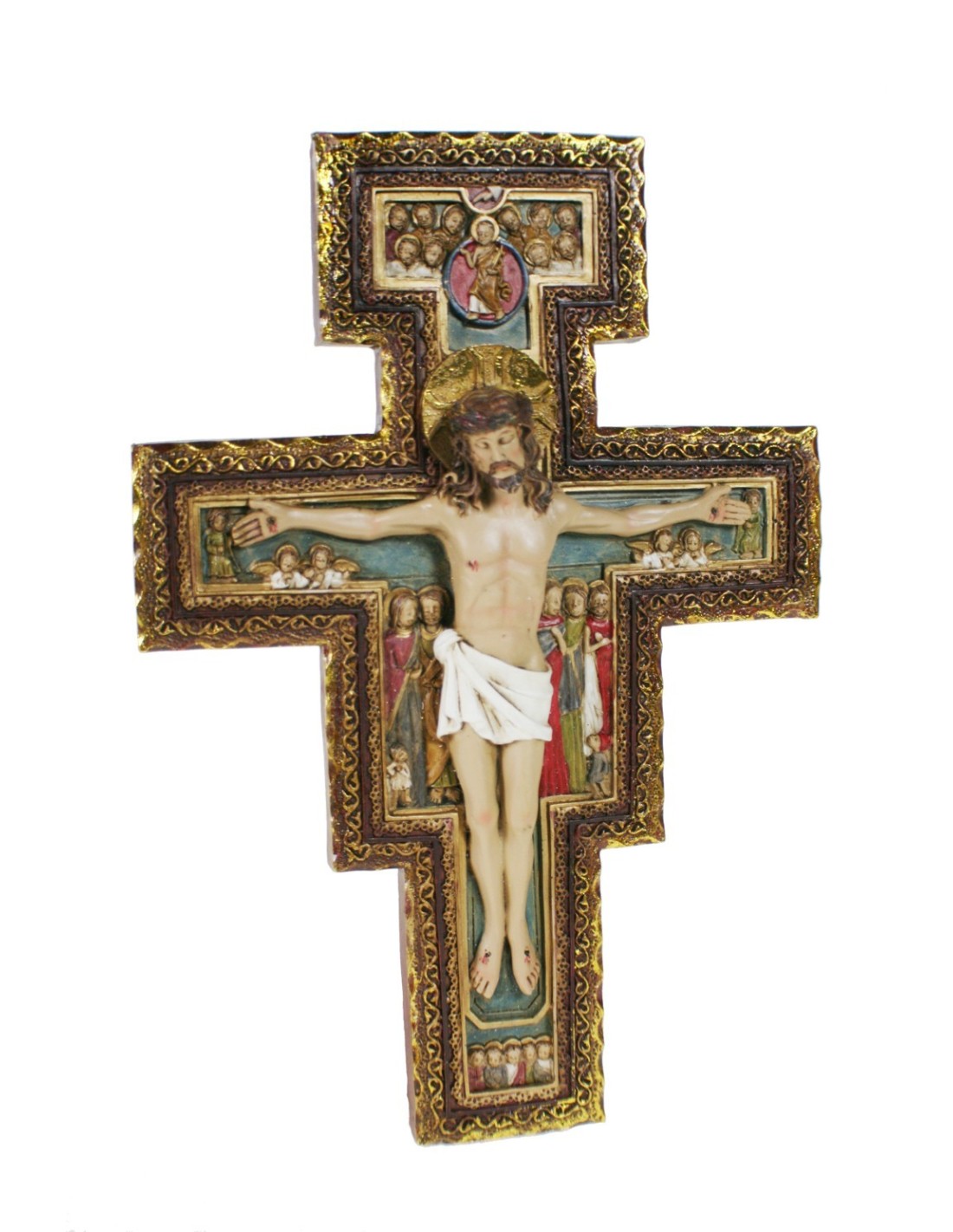 Crucifijo de Cristo San Damián en Oro Brillante.