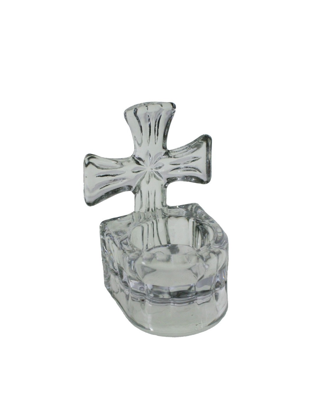 Porta Vela Pequeña en Forma de Cruz de Cristal con Base.