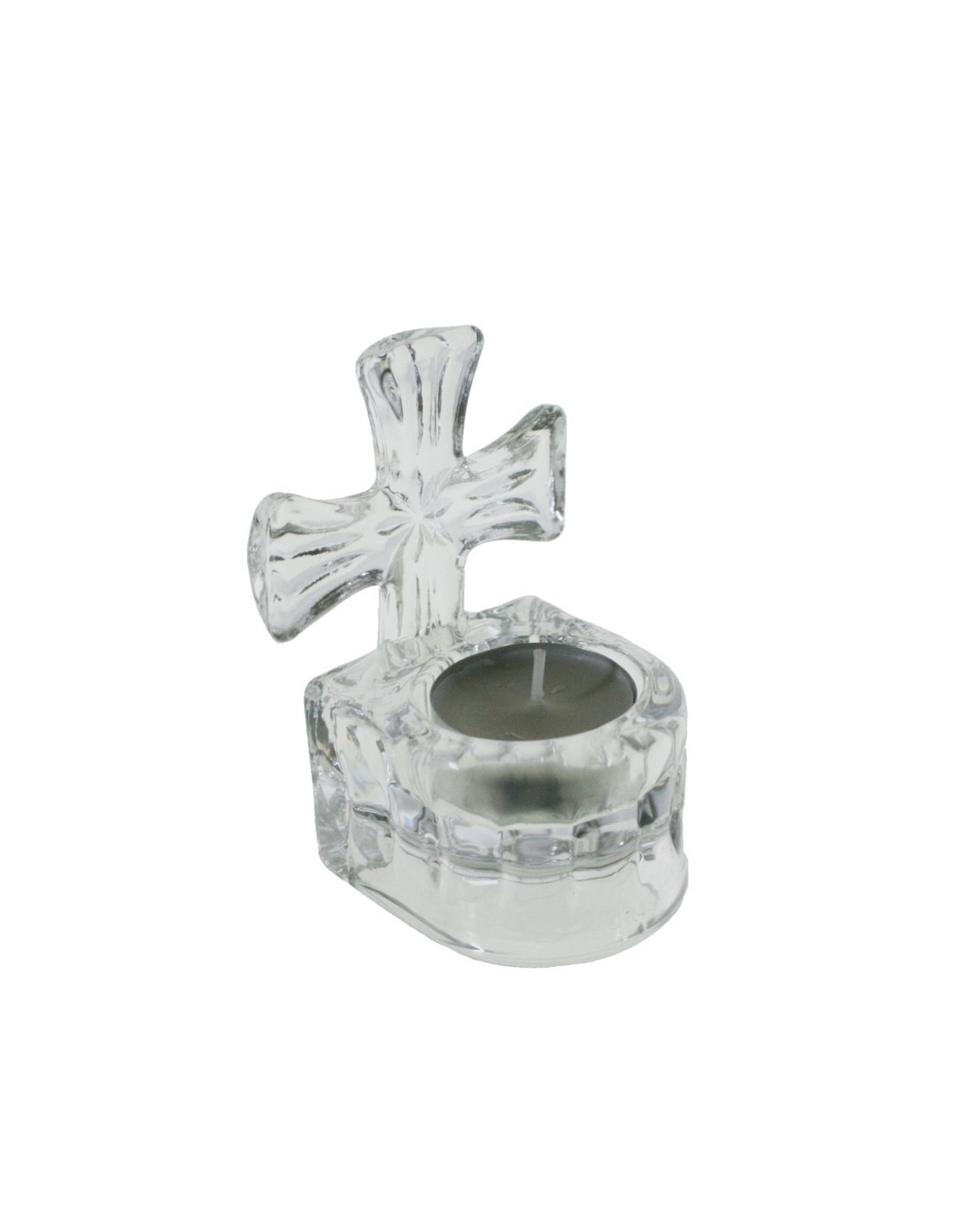 Cruz Pequeña de Cristal para Sobre Mesa con Base para Velas Light Decoración Hogar. Medidas: 10x7x7 cm.